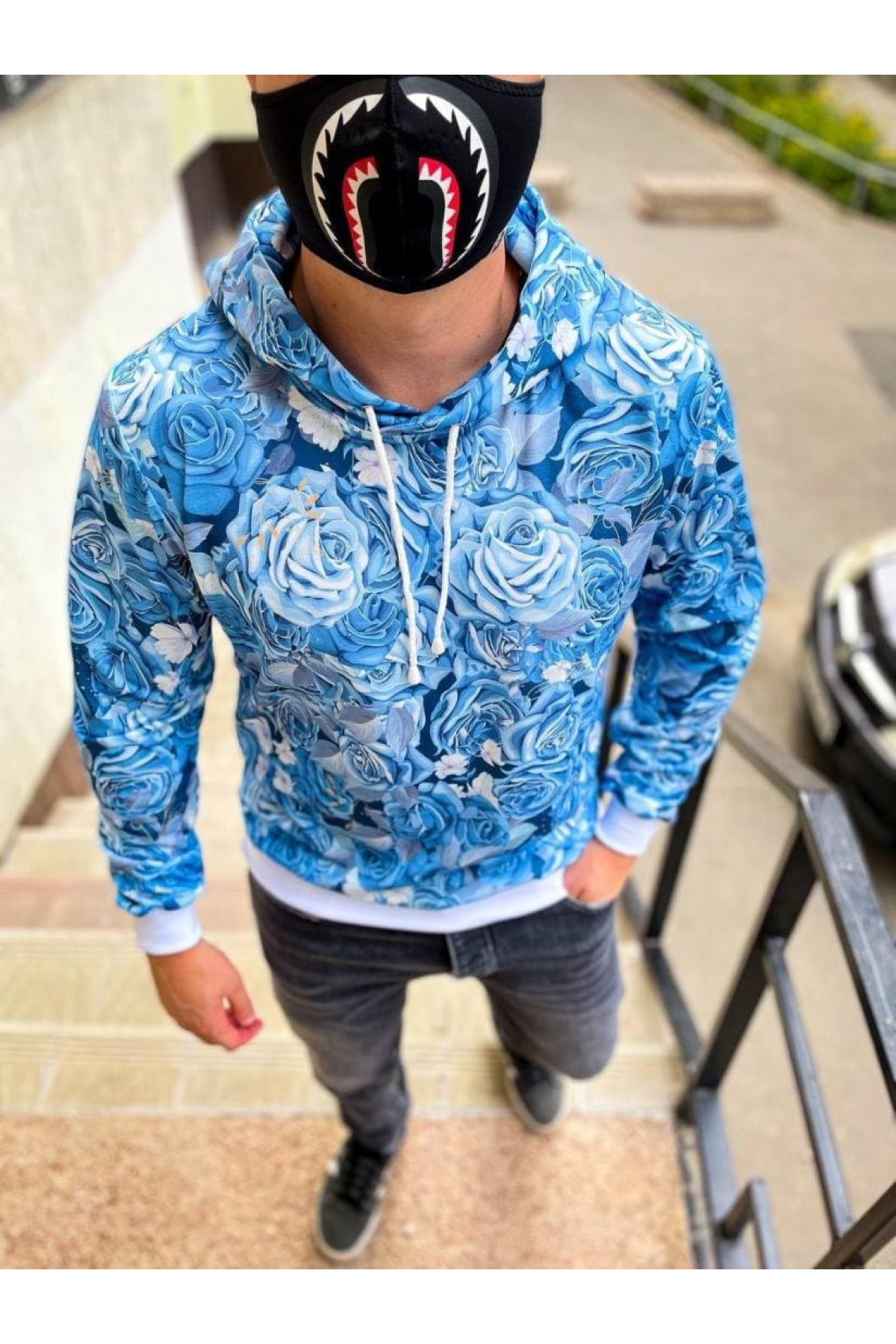 Блакитний чоловічий худі з квітковим принтом (6-186s1)