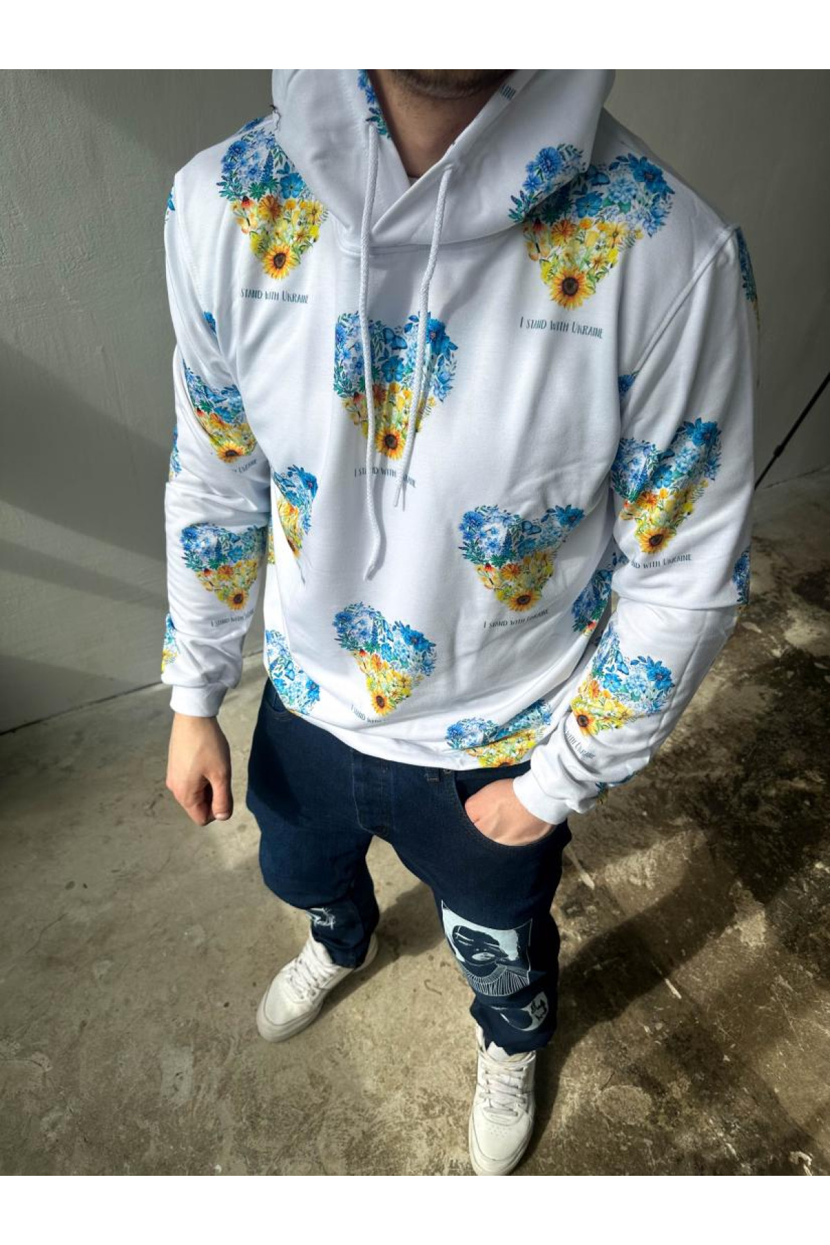 Чоловіче біле патріотичне худі з капюшоном