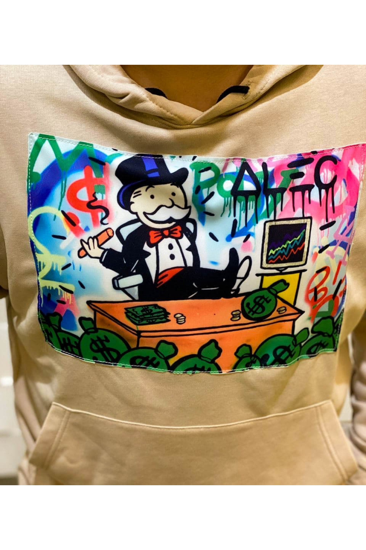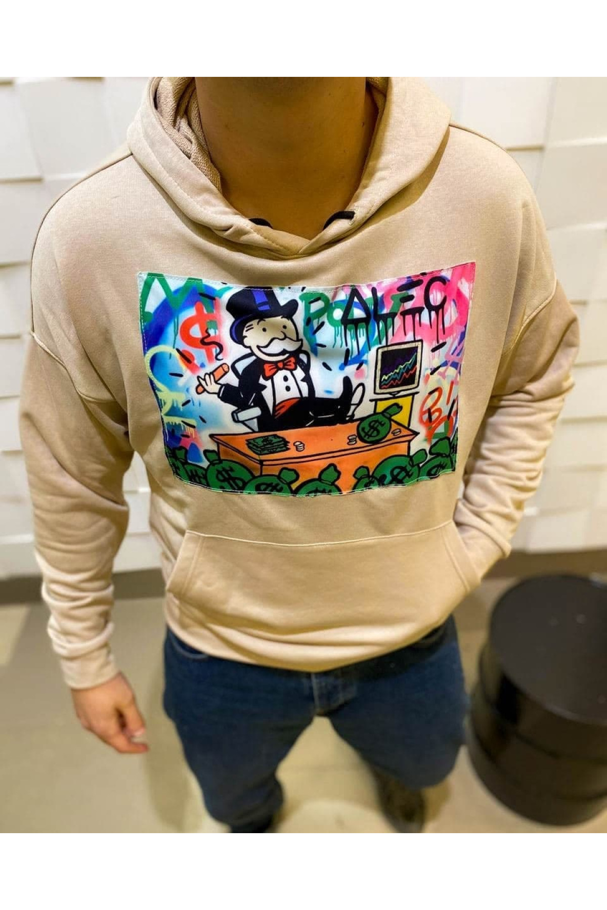 Принтований чоловічий жовтий худі з абстрактним принтом