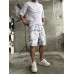 Сині чоловічі трикотажні літні шорти з яскравим принтом