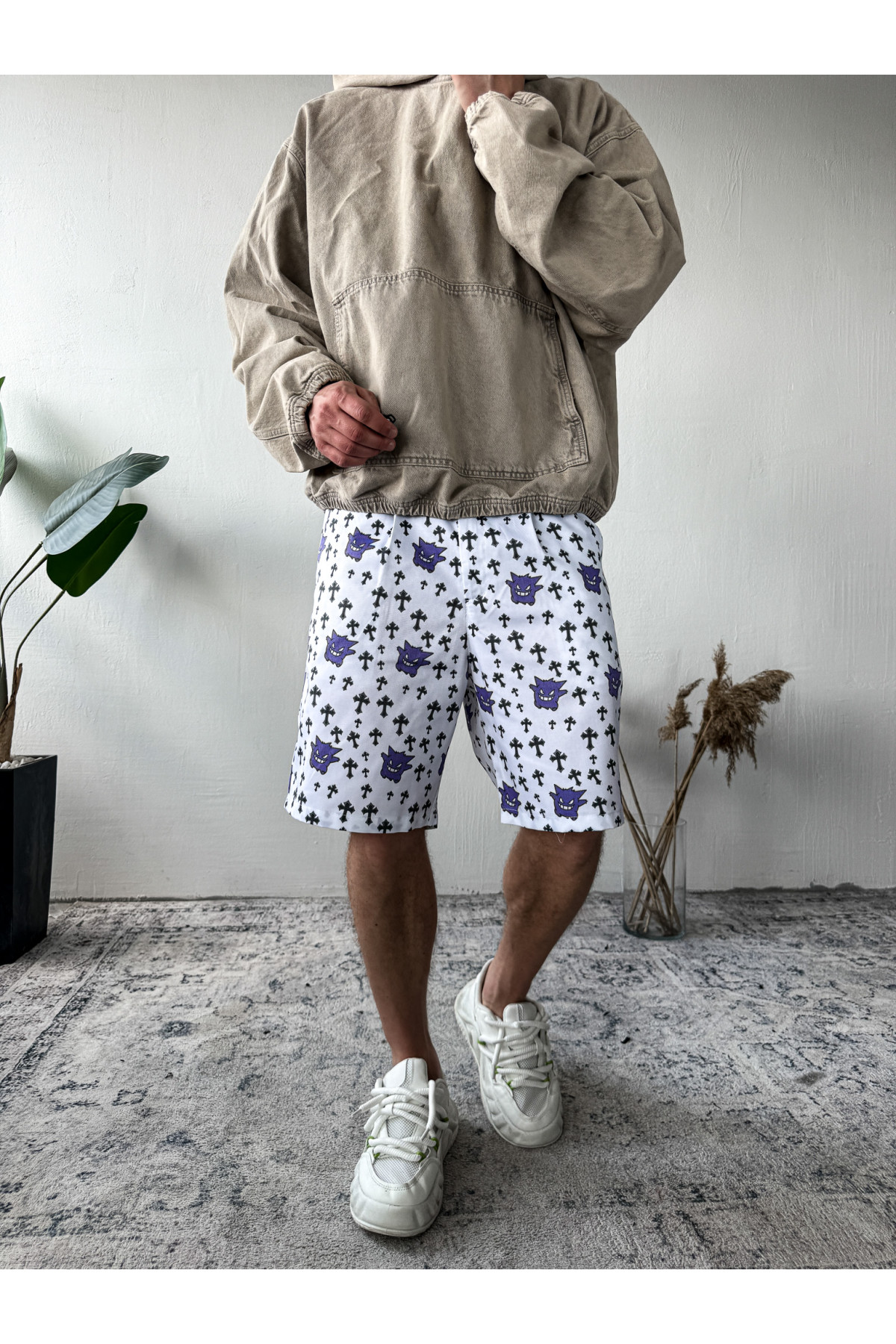 Чоловічі яскраві різнокольорові трикотажні літні шорти з мультяшним принтом