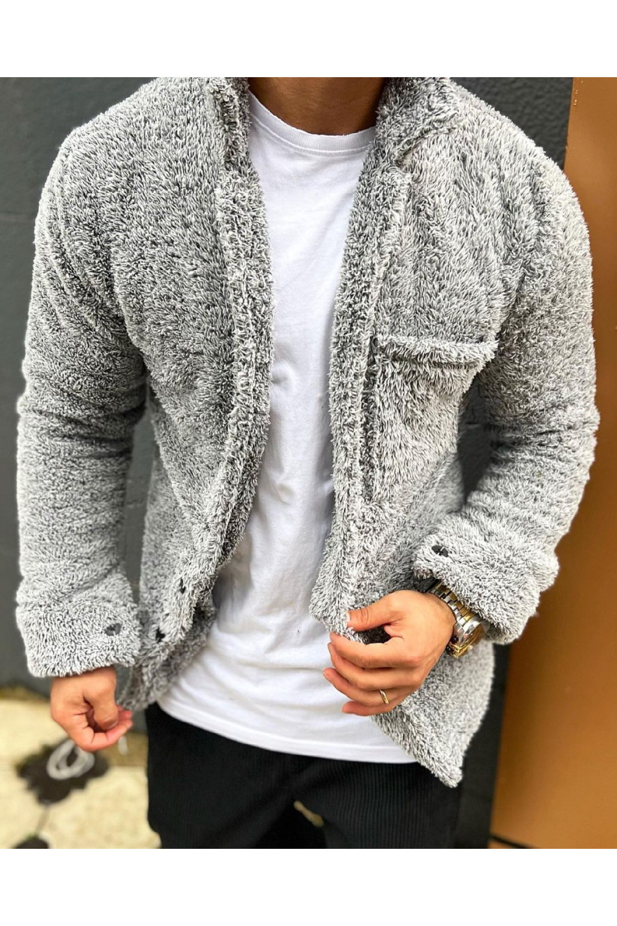 Опис Світло-сіра тепла чоловіча сорочка