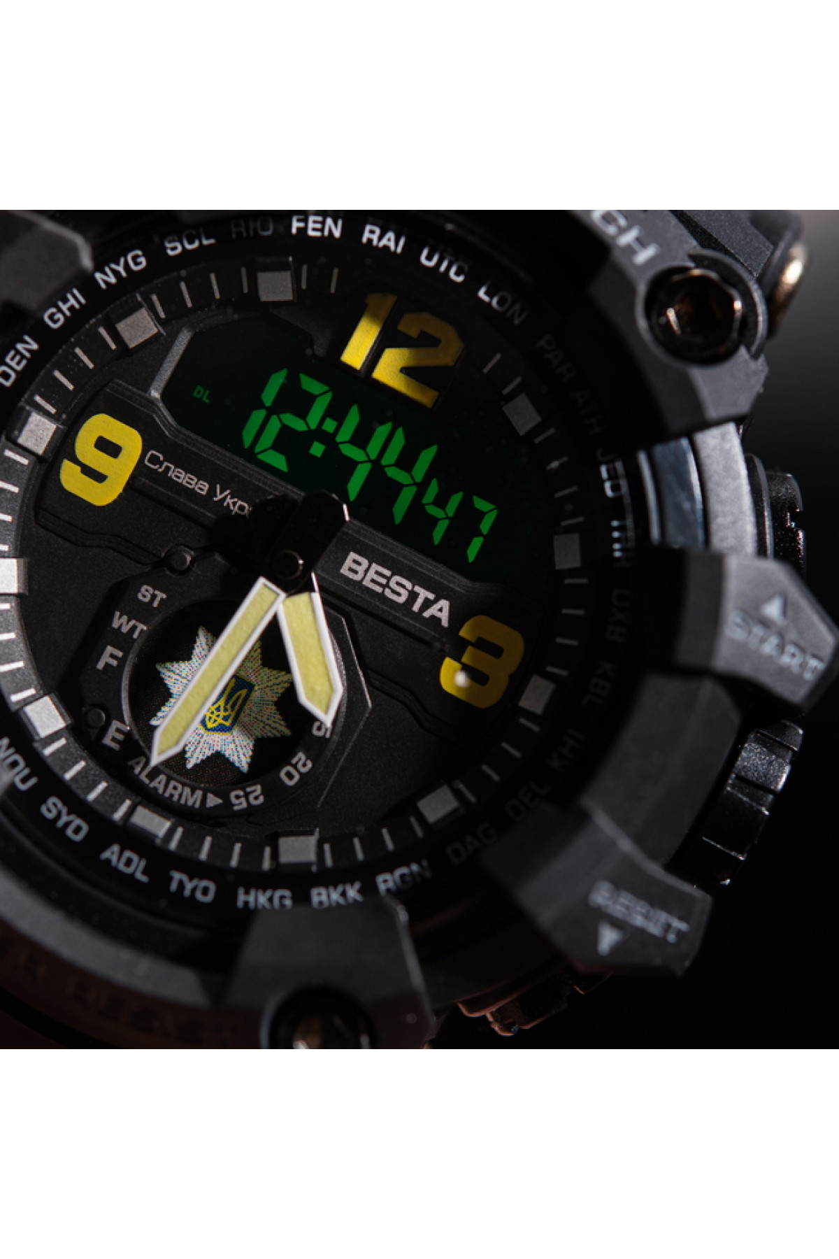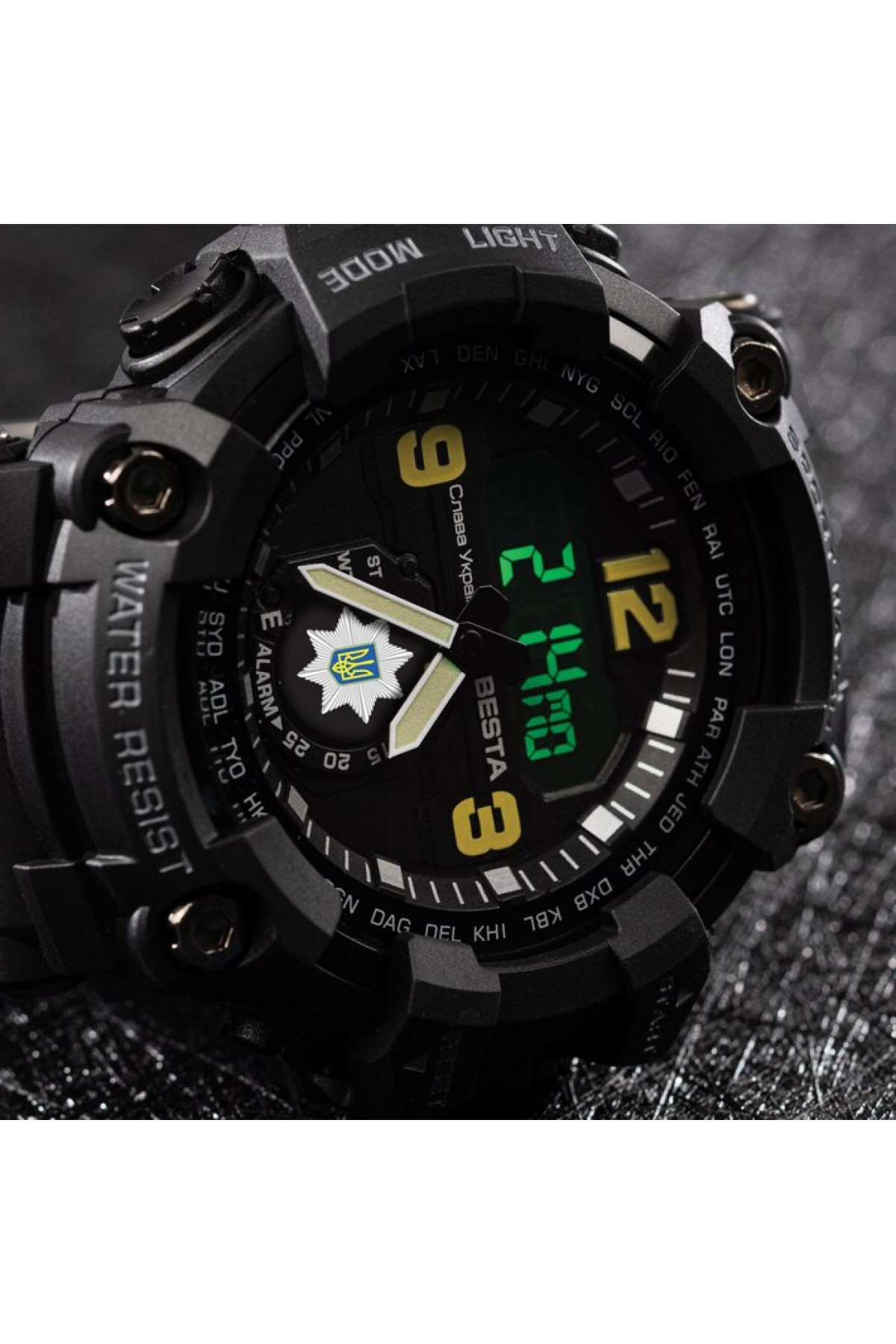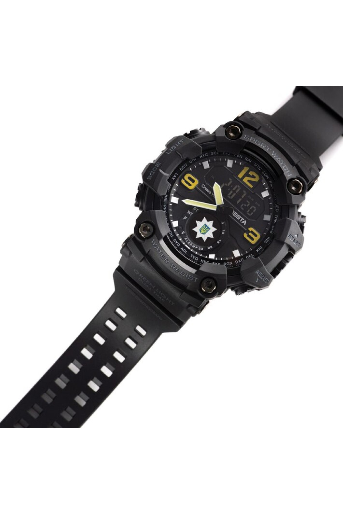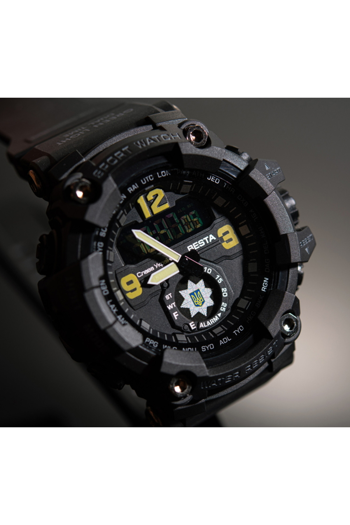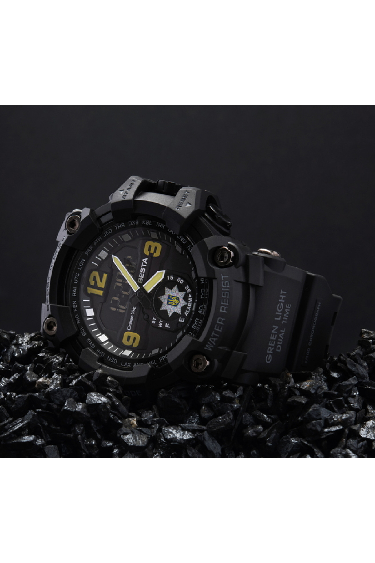 Знак поліції, секундомір, будильник, підсвічування, дата, день тижня, місяць, другий час (Dual Time)