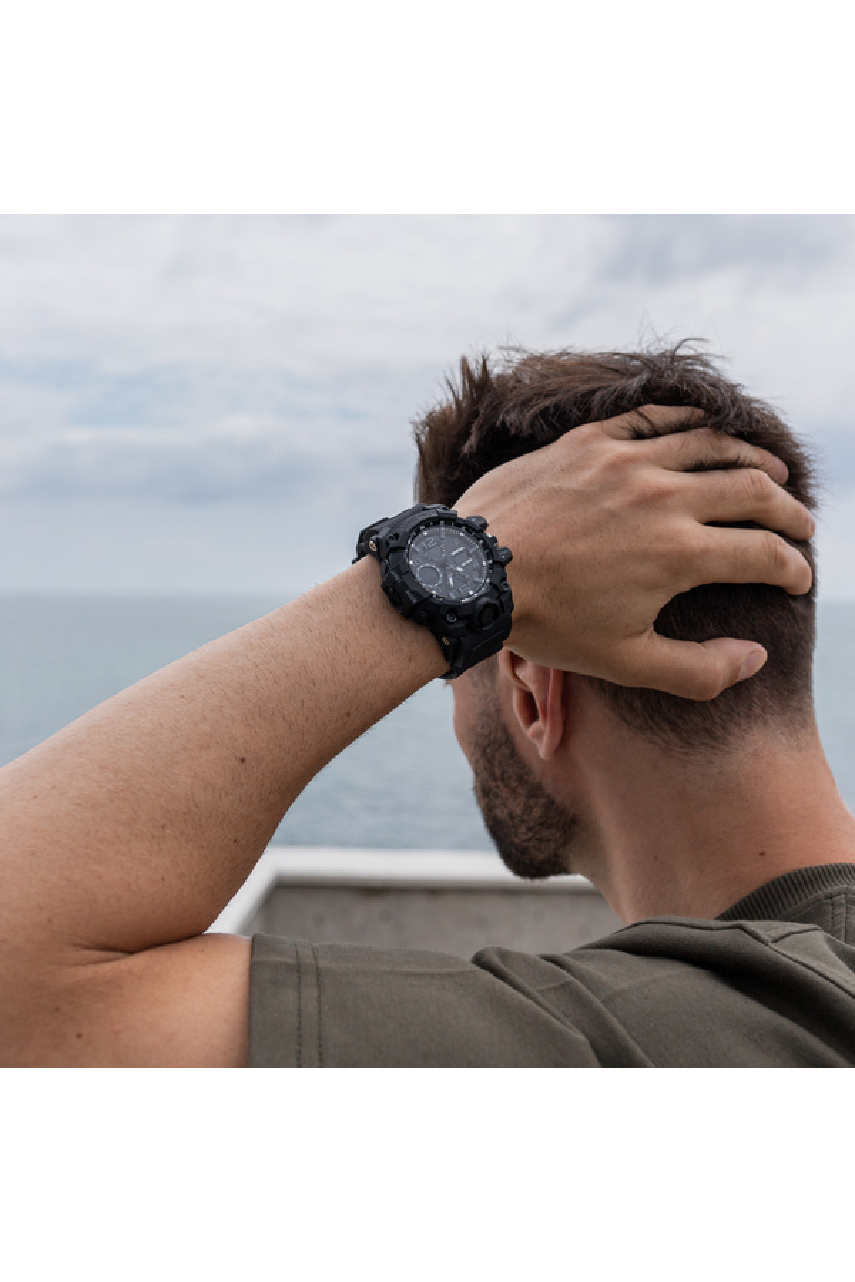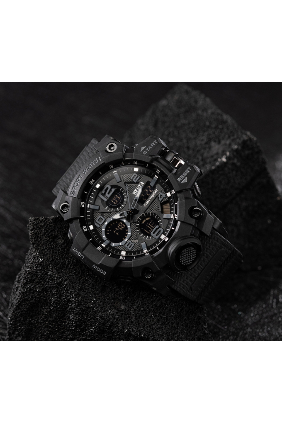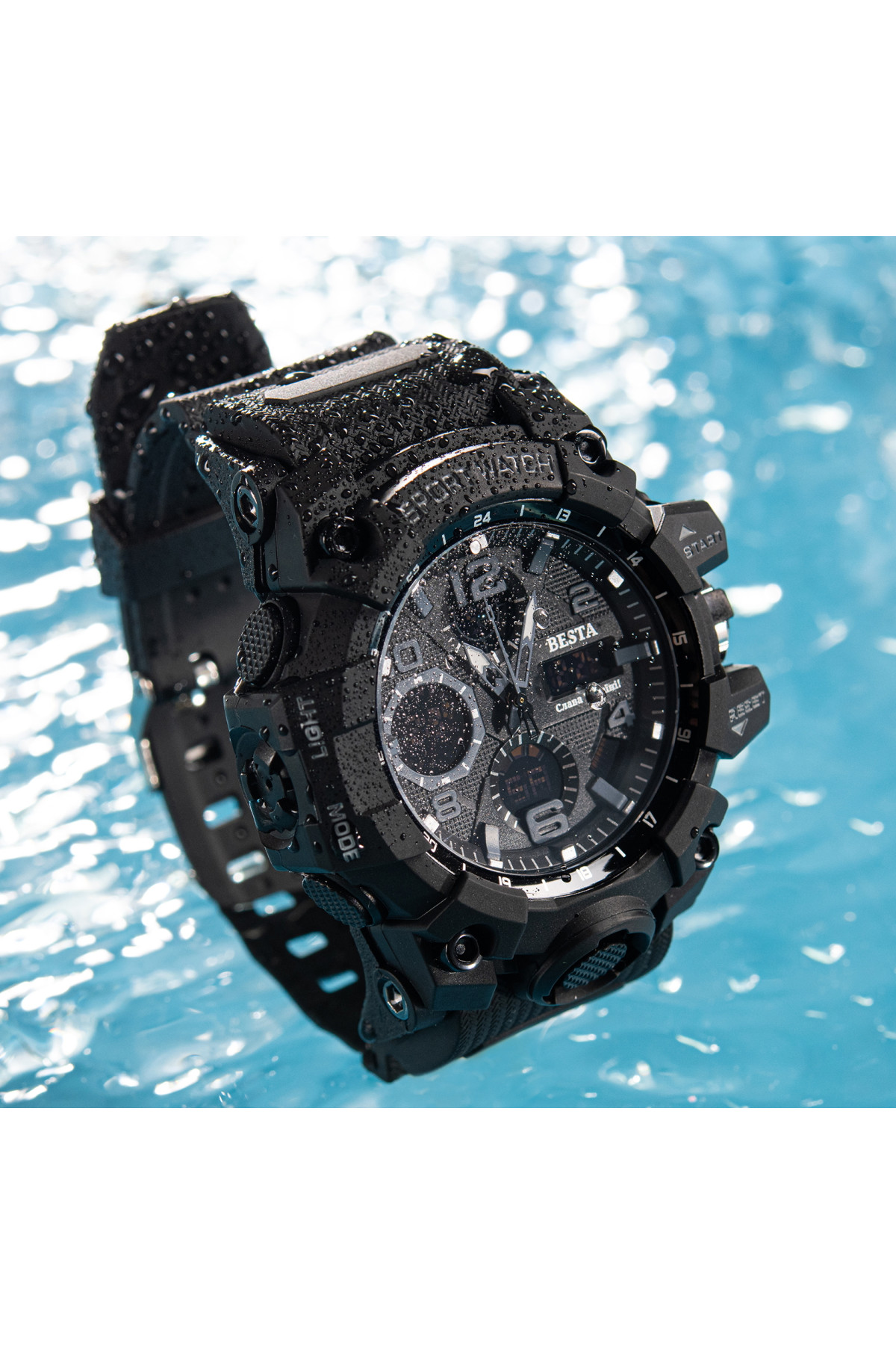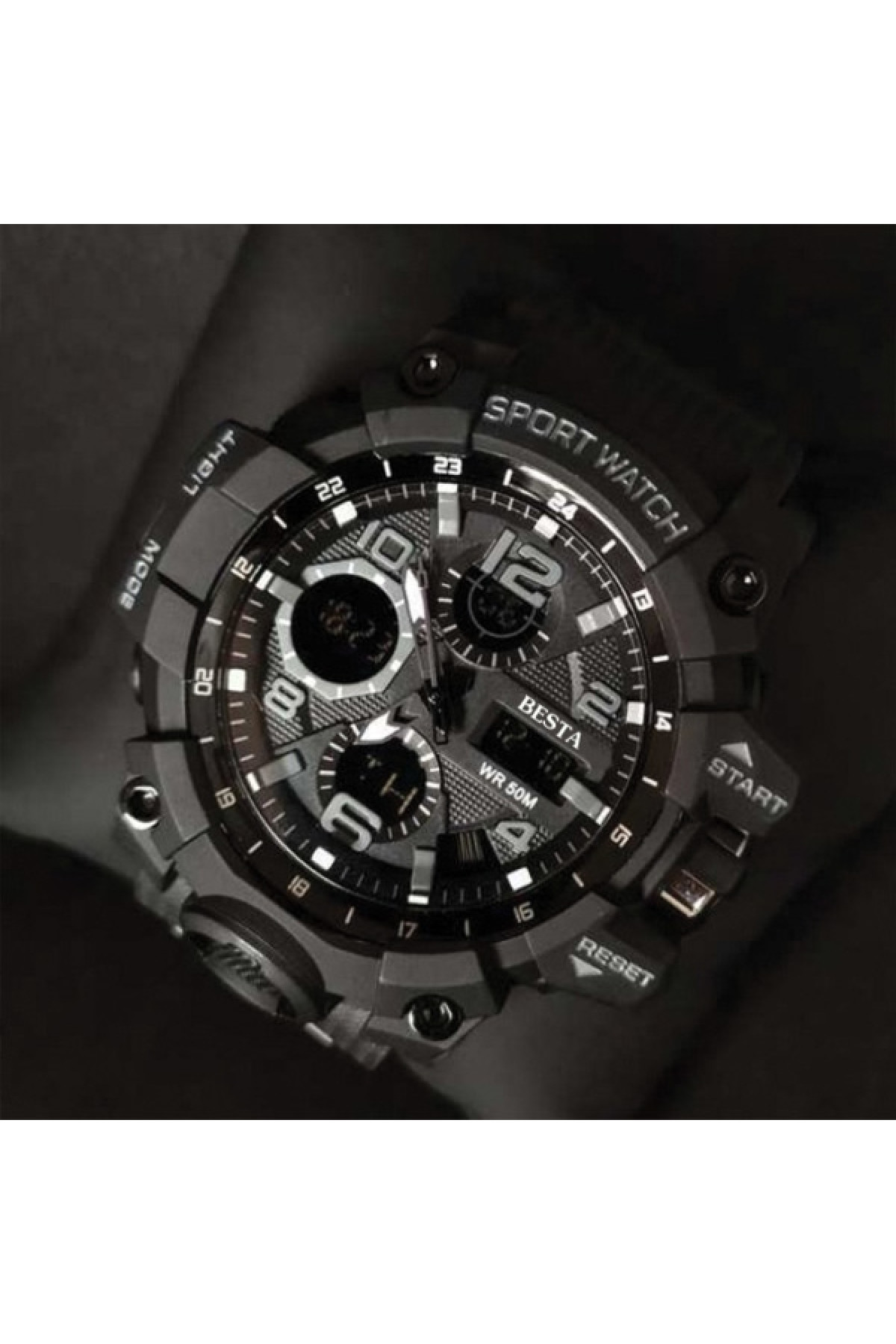 Секундомір, будильник, підсвічування, час показується на циферблаті й стрілками, дата, день тижня, місяць