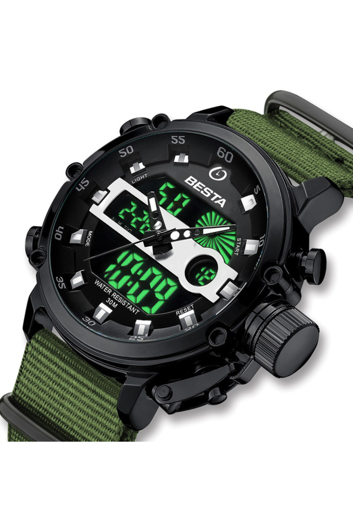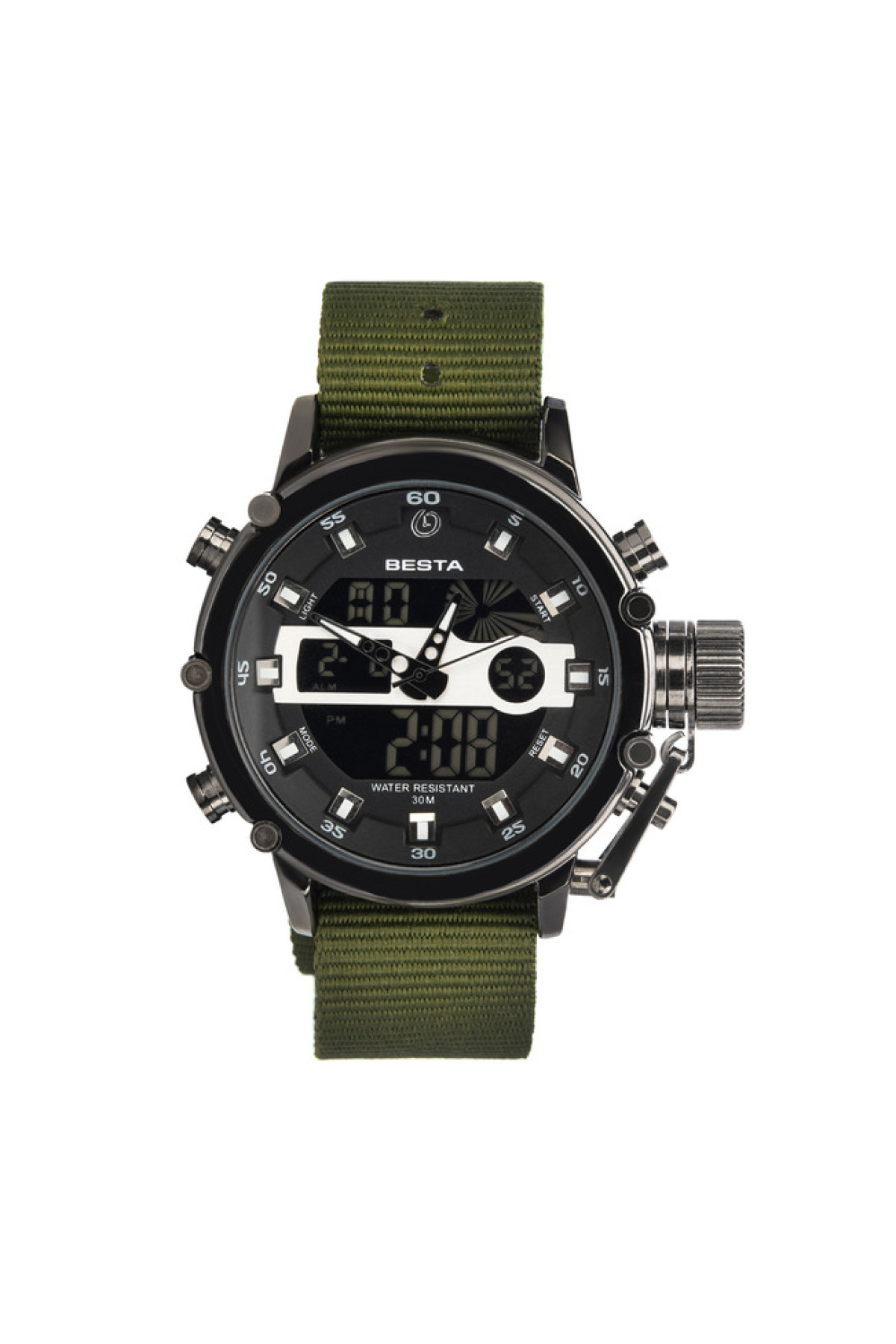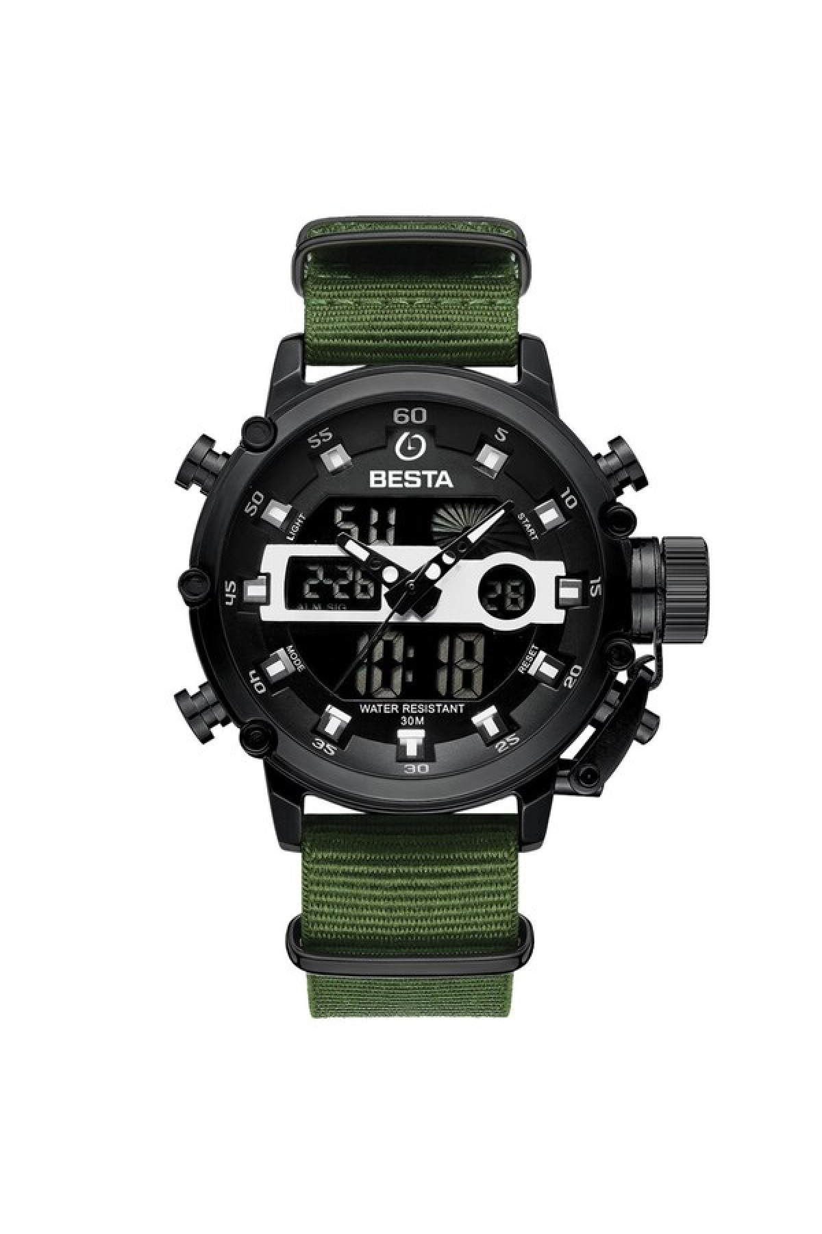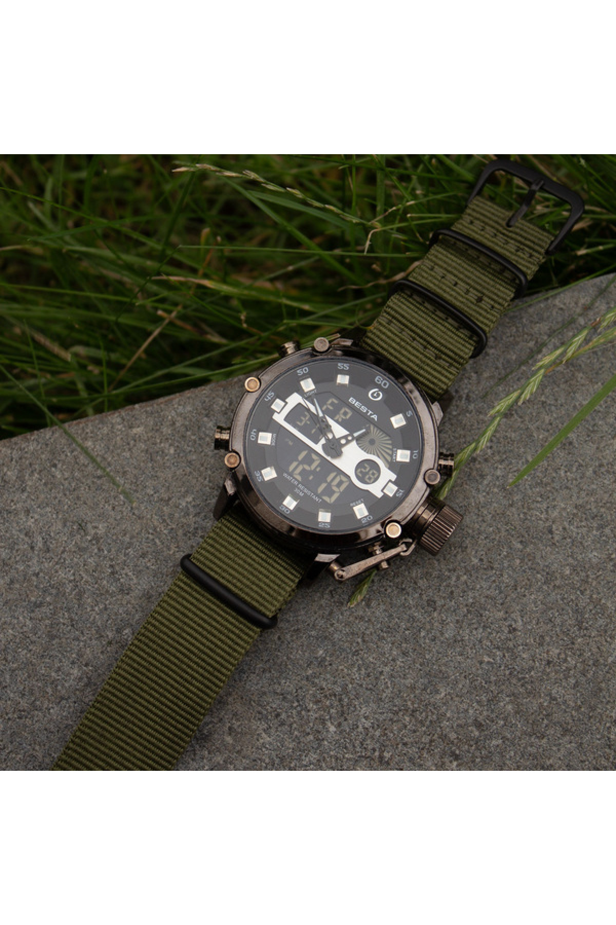 Будильник, підсвічування, секундомір, час показується на циферблаті й стрілками, дата, день тижня, місяць