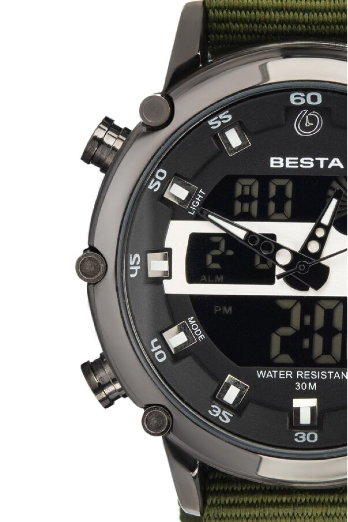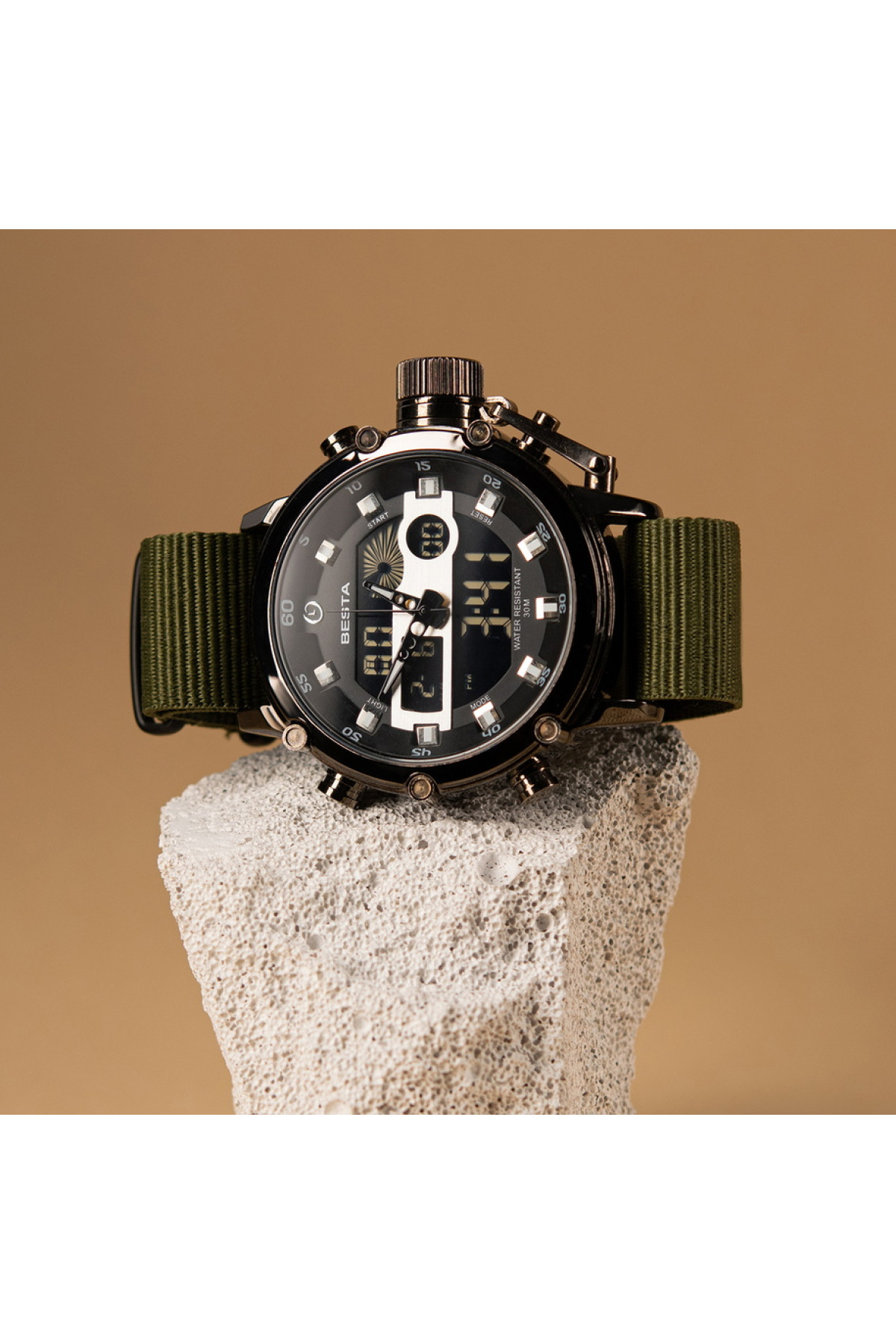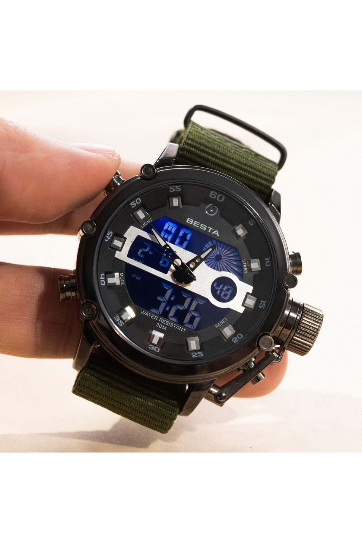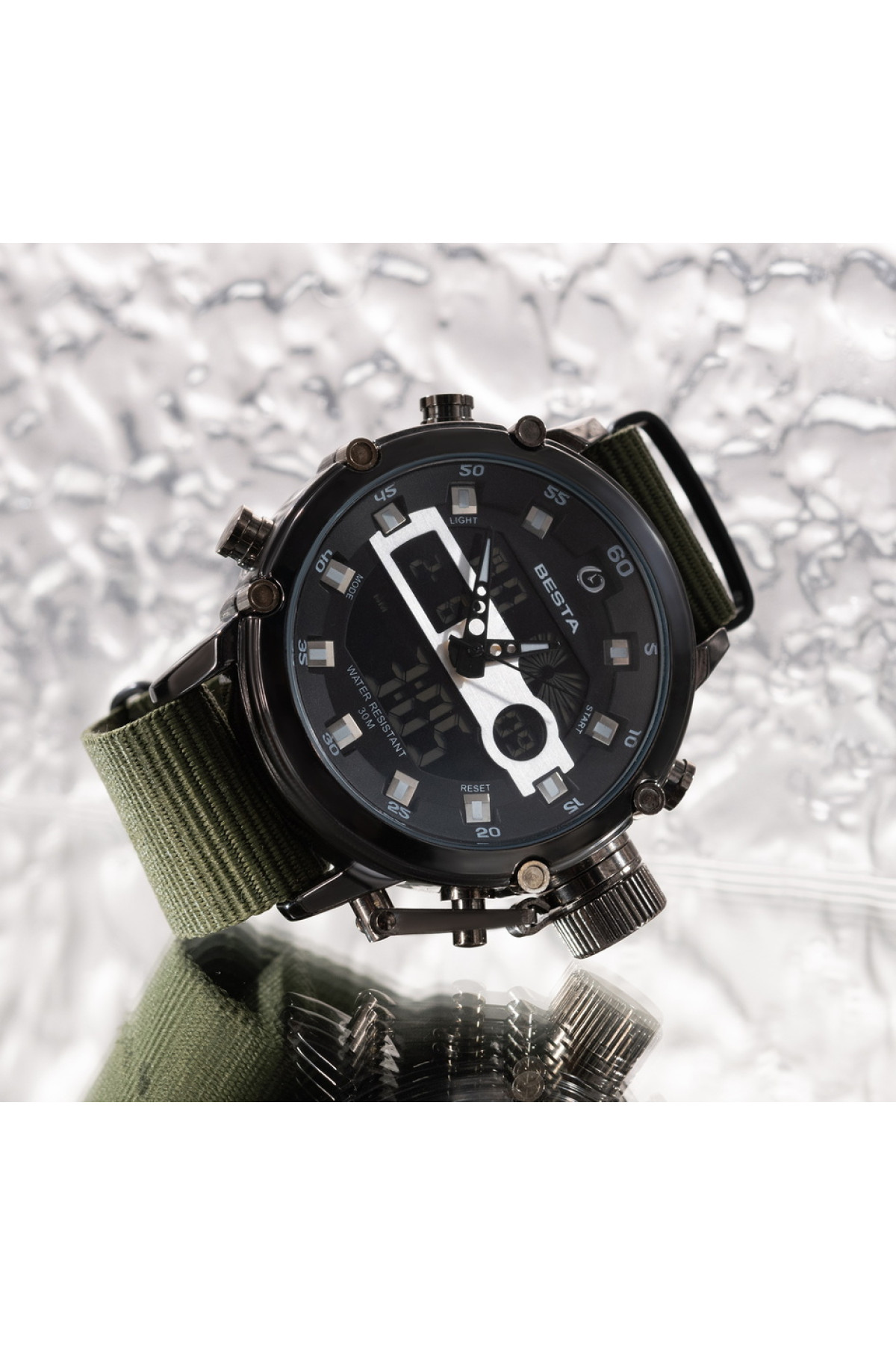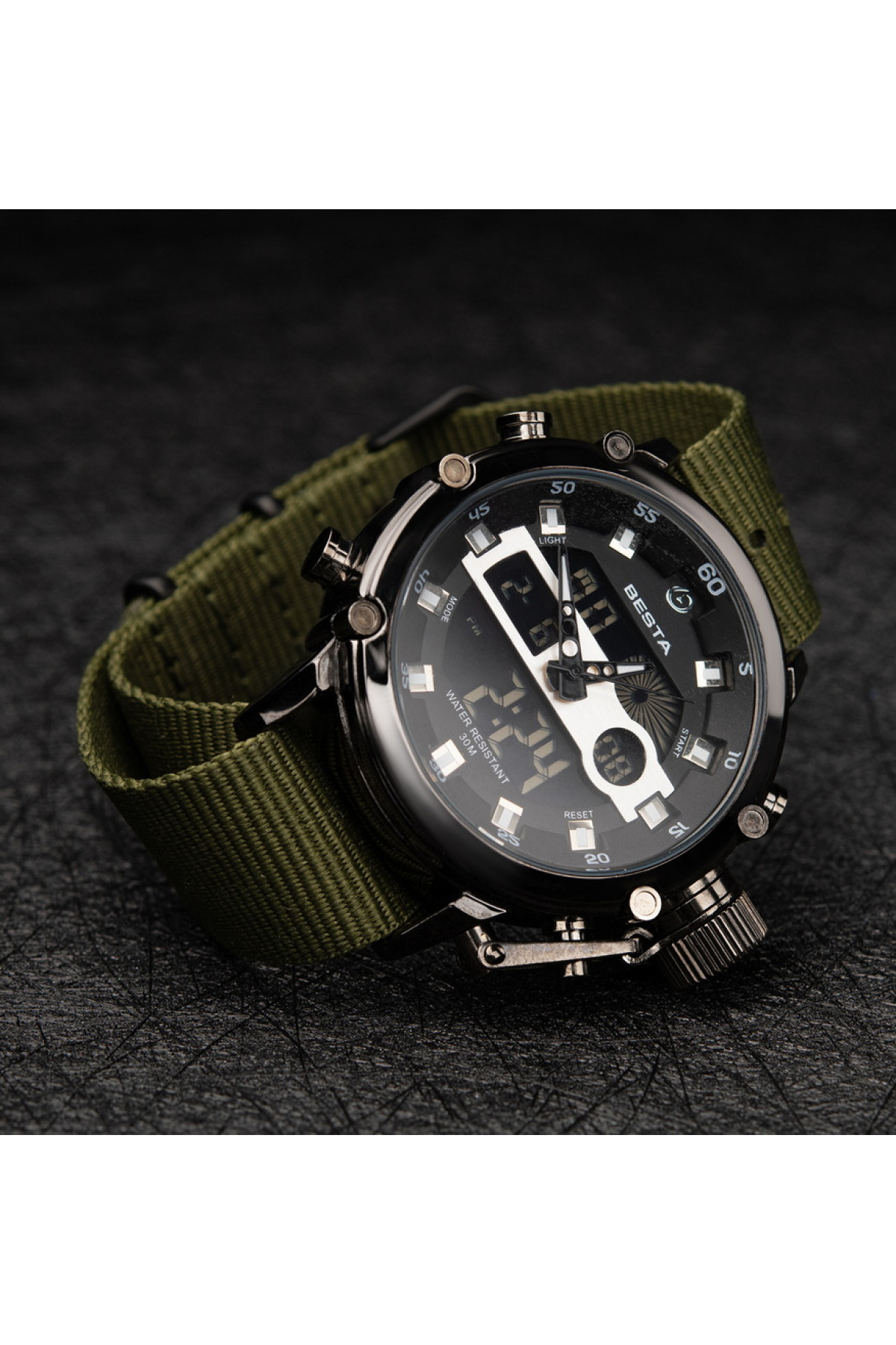Будильник, підсвічування, секундомір, час показується на циферблаті й стрілками, дата, день тижня, місяць