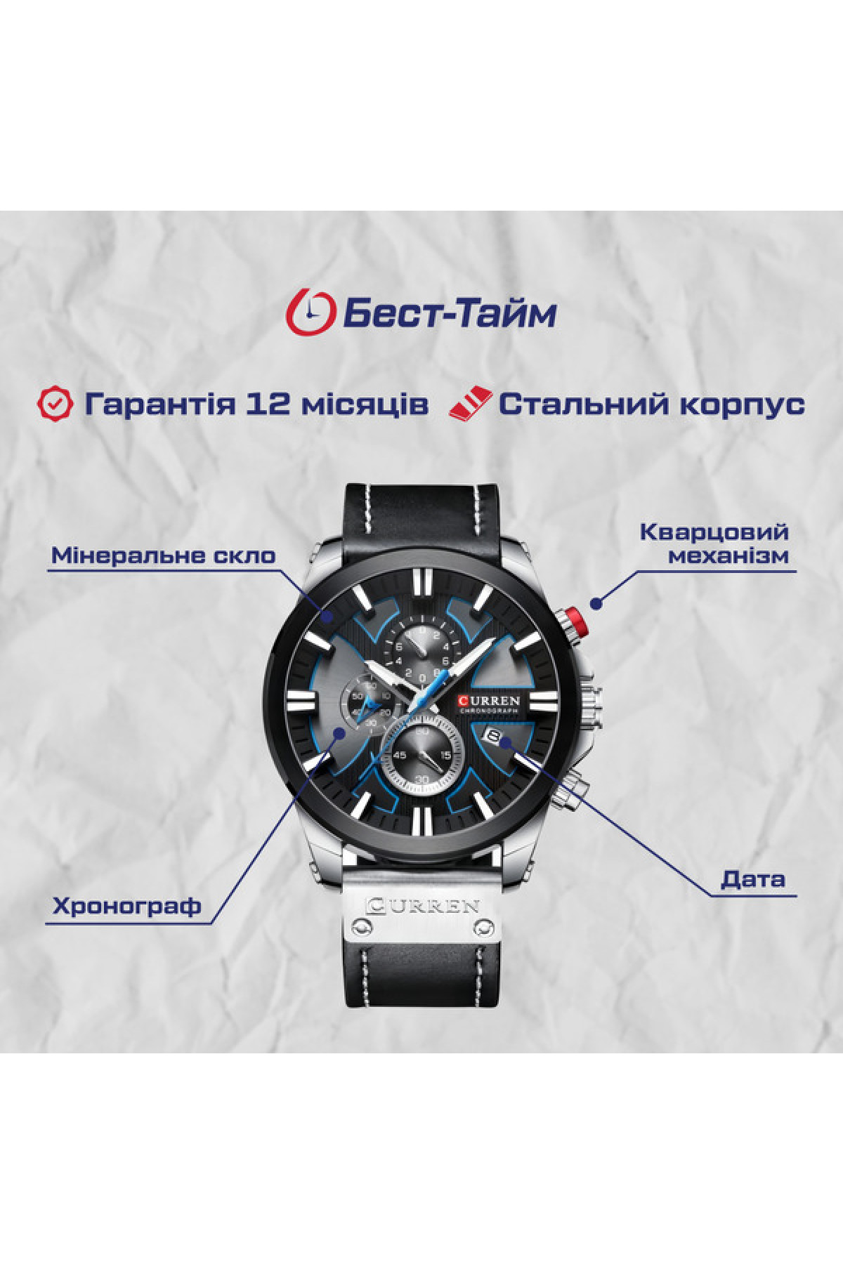 Curren - відомий бренд кварцових годинників, який на ринку з 2001 року. Годинники цього бренду відрізняються не тільки стильним дизайном, але й високою якістю збірки, що забезпечує їх надійність і довговічність.Ці годинники стануть відмінним доповненням до будь-якого стилю одягу. Будь-то формальний одяг чи спортивний стиль, годинники Curren підкреслять вашу індивідуальність та зроблять вас помітним серед натовпу.Однак, крім свого естетичного вигляду, годинники Curren також гарантують точний хід. Завдяки надійному кварцовому механізму, вони будуть надійно показувати час протягом тривалого періоду.Загалом, годинники Curren поєднують в собі якість, дизайн й функціональність, що робить їх відмінним вибором для всіх, хто цінує стиль і якість годинників.В комплекті йде офіційна гарантія на 12 місяців.