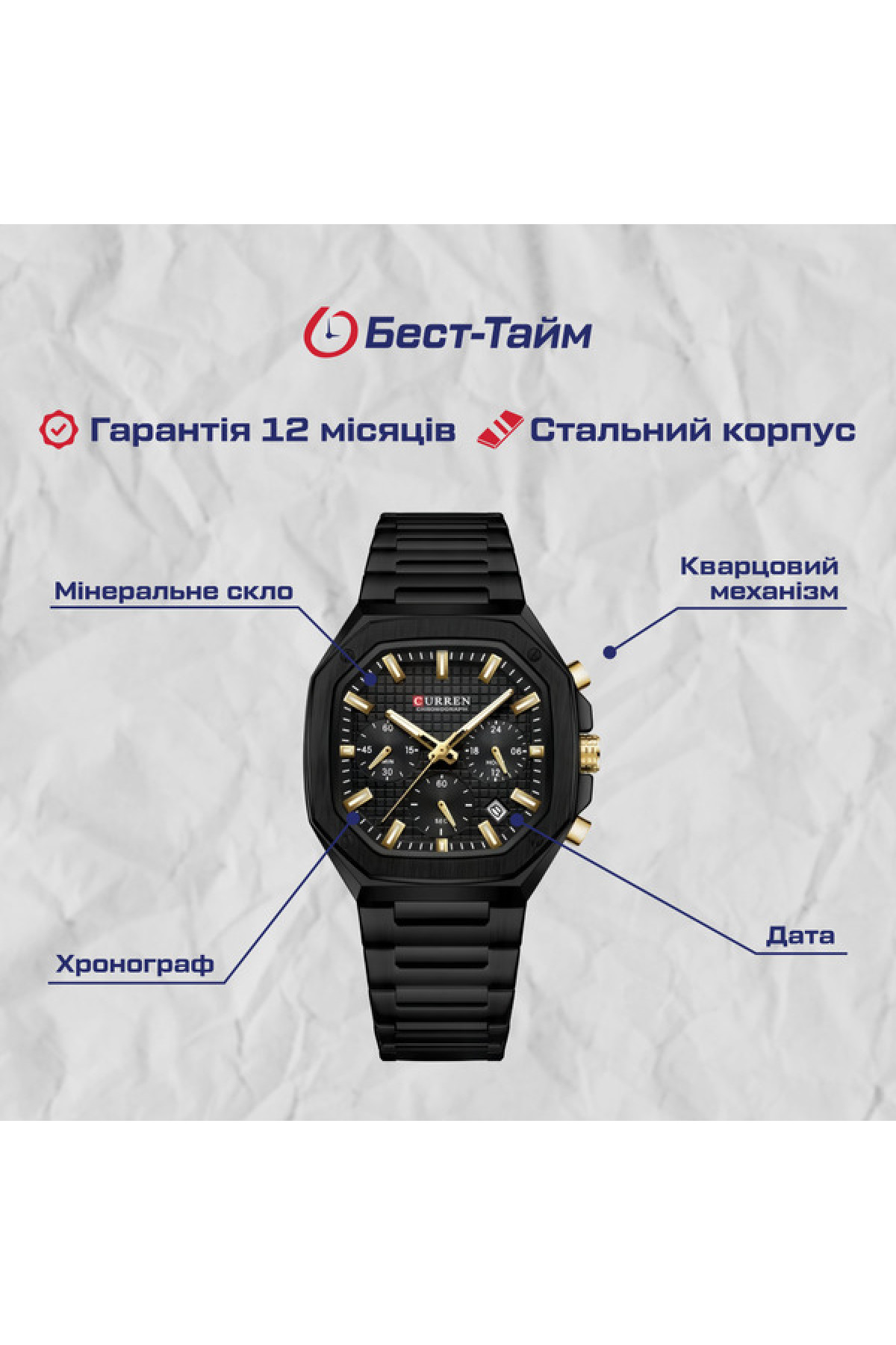 Curren - відомий бренд кварцових годинників, який на ринку з 2001 року. Годинники цього бренду відрізняються не тільки стильним дизайном, але й високою якістю збірки, що забезпечує їх надійність і довговічність.Ці годинники стануть відмінним доповненням до будь-якого стилю одягу. Будь-то формальний одяг чи спортивний стиль, годинники Curren підкреслять вашу індивідуальність та зроблять вас помітним серед натовпу.Однак, крім свого естетичного вигляду, годинники Curren також гарантують точний хід. Завдяки надійному кварцовому механізму, вони будуть надійно показувати час протягом тривалого періоду.Загалом, годинники Curren поєднують в собі якість, дизайн й функціональність, що робить їх відмінним вибором для всіх, хто цінує стиль і якість годинників.В комплекті йде офіційна гарантія на 12 місяців.