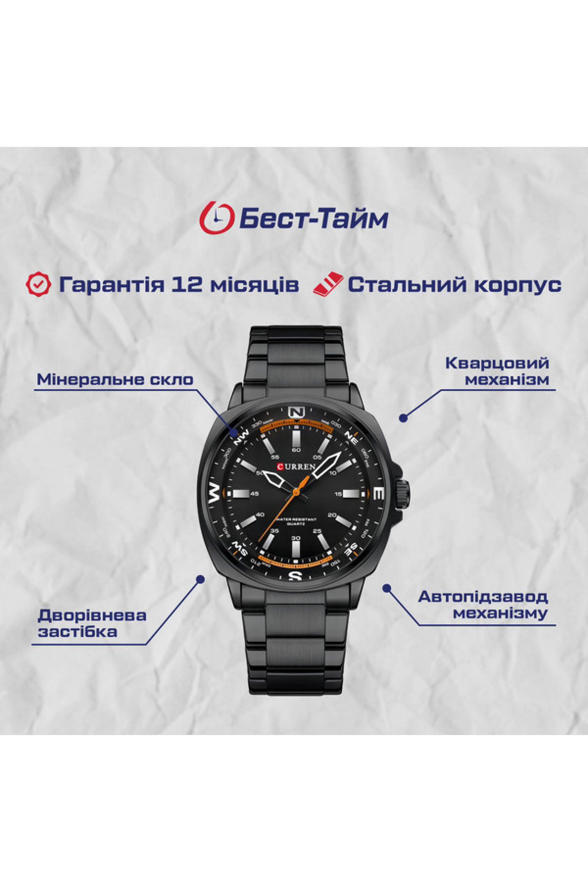 Curren - відомий бренд кварцових годинників, який на ринку з 2001 року. Годинники цього бренду відрізняються не тільки стильним дизайном, але й високою якістю збірки, що забезпечує їх надійність і довговічність.Ці годинники стануть відмінним доповненням до будь-якого стилю одягу. Будь-то формальний одяг чи спортивний стиль, годинники Curren підкреслять вашу індивідуальність та зроблять вас помітним серед натовпу.Однак, крім свого естетичного вигляду, годинники Curren також гарантують точний хід. Завдяки надійному кварцовому механізму, вони будуть надійно показувати час протягом тривалого періоду.Загалом, годинники Curren поєднують в собі якість, дизайн й функціональність, що робить їх відмінним вибором для всіх, хто цінує стиль і якість годинників.В комплекті йде офіційна гарантія на 12 місяців.
