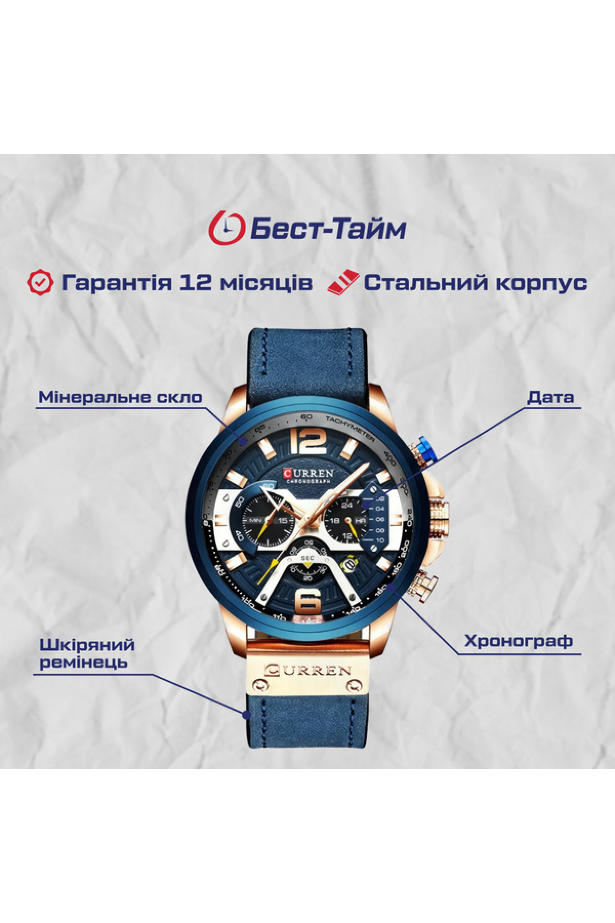 Curren - відомий бренд кварцових годинників, який на ринку з 2001 року. Годинники цього бренду відрізняються не тільки стильним дизайном, але й високою якістю збірки, що забезпечує їх надійність і довговічність.Ці годинники стануть відмінним доповненням до будь-якого стилю одягу. Будь-то формальний одяг чи спортивний стиль, годинники Curren підкреслять вашу індивідуальність та зроблять вас помітним серед натовпу.Однак, крім свого естетичного вигляду, годинники Curren також гарантують точний хід. Завдяки надійному кварцовому механізму, вони будуть надійно показувати час протягом тривалого періоду.Загалом, годинники Curren поєднують в собі якість, дизайн й функціональність, що робить їх відмінним вибором для всіх, хто цінує стиль і якість годинників.В комплекті йде офіційна гарантія на 12 місяців.