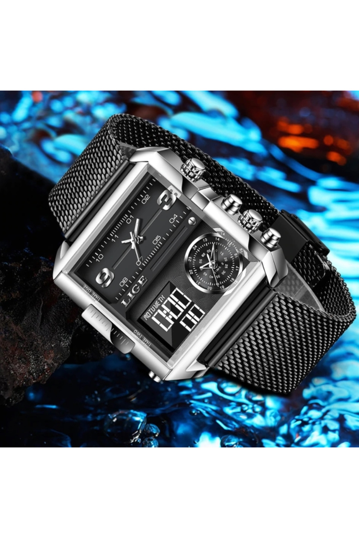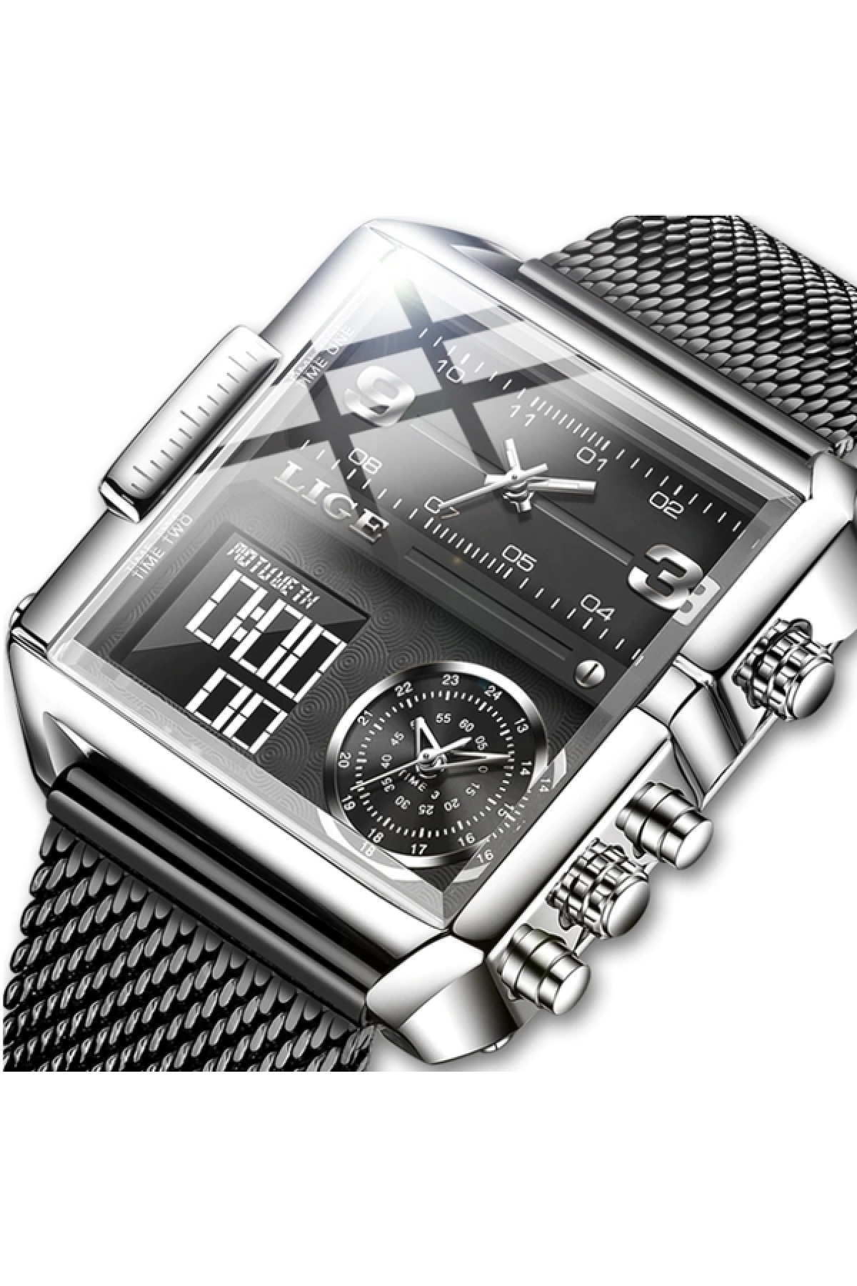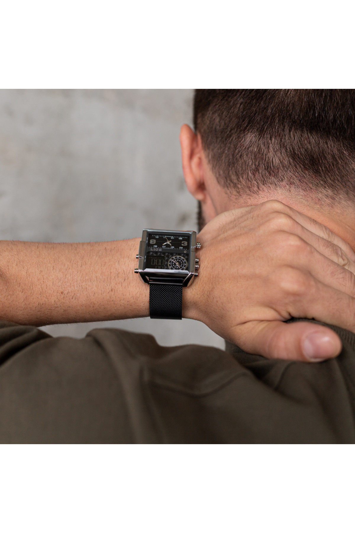 Два механізми часу, секундомір, будильник, підсвічування, дата, день тижня, місяць