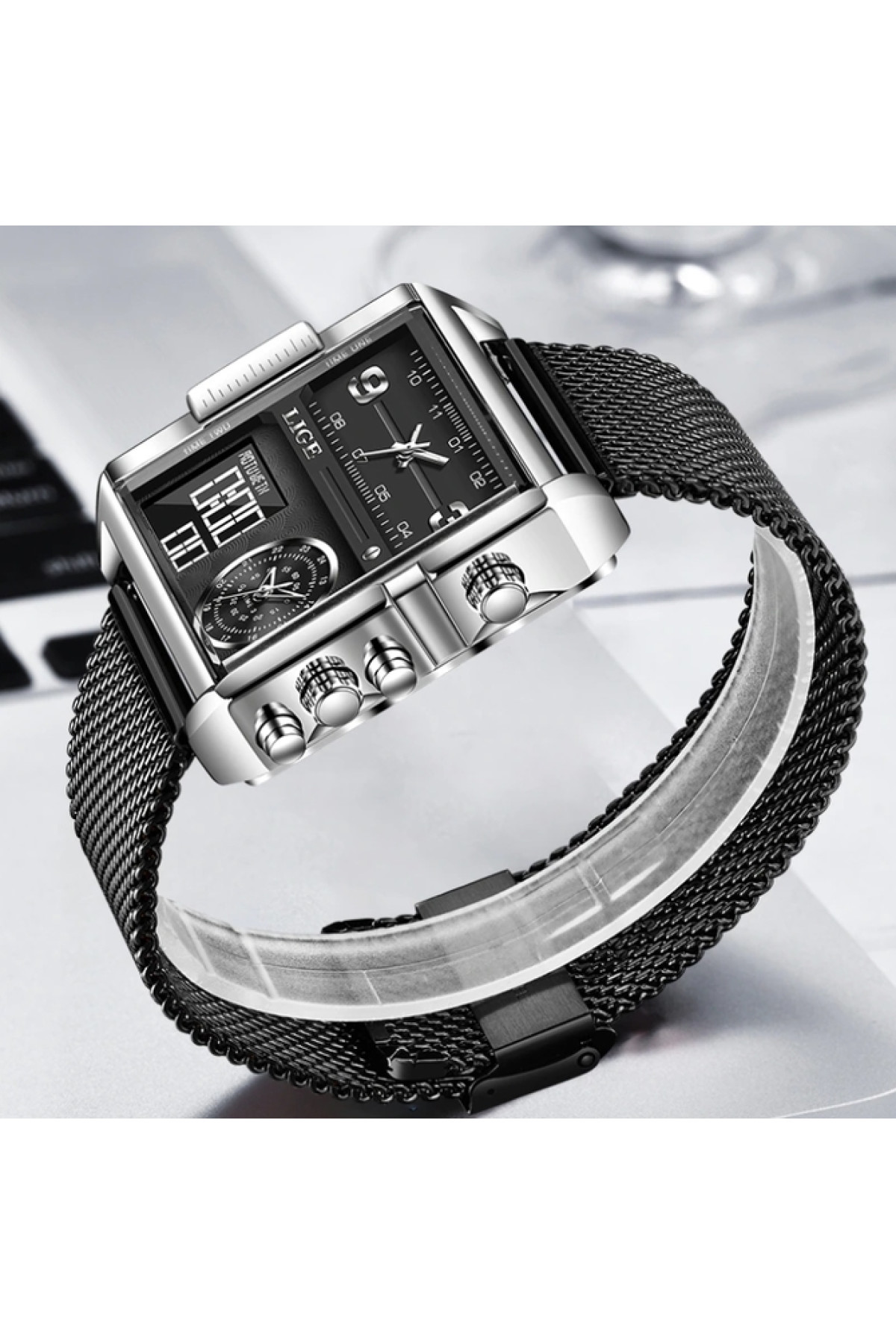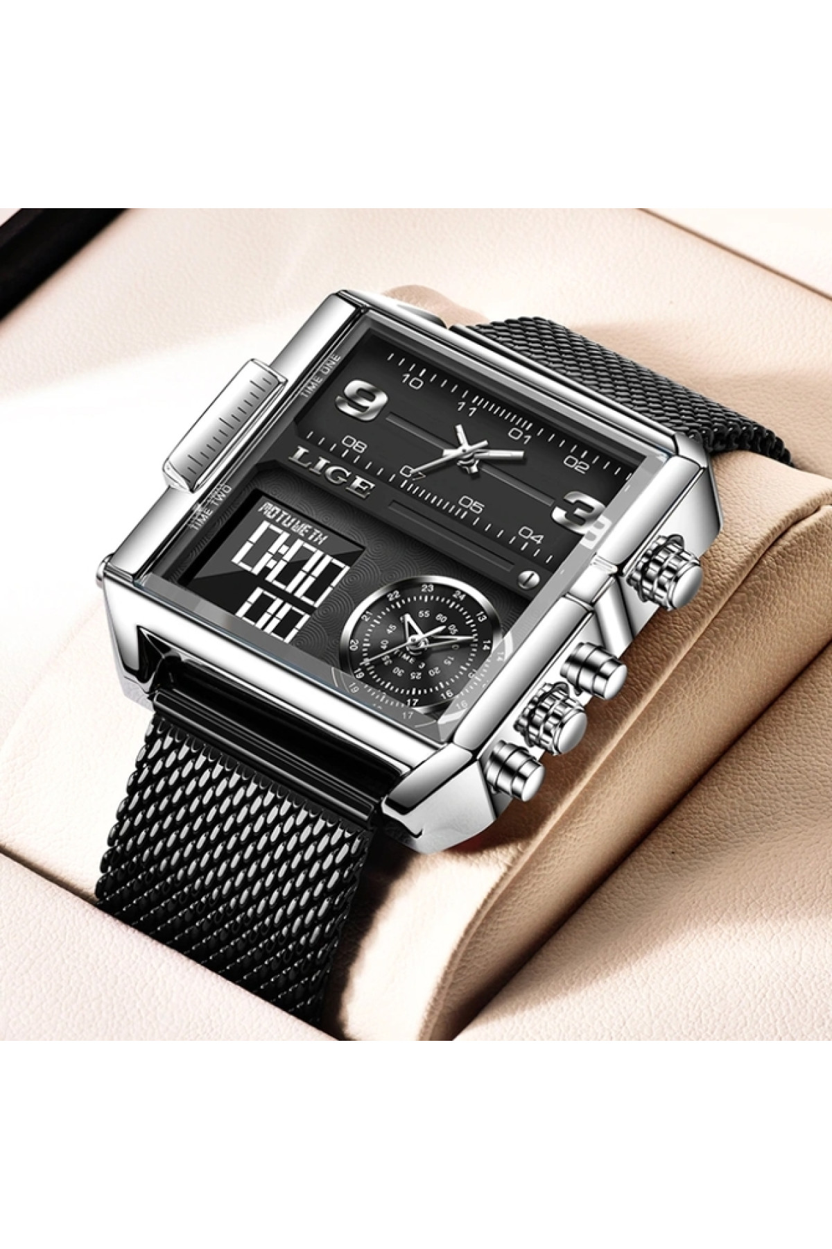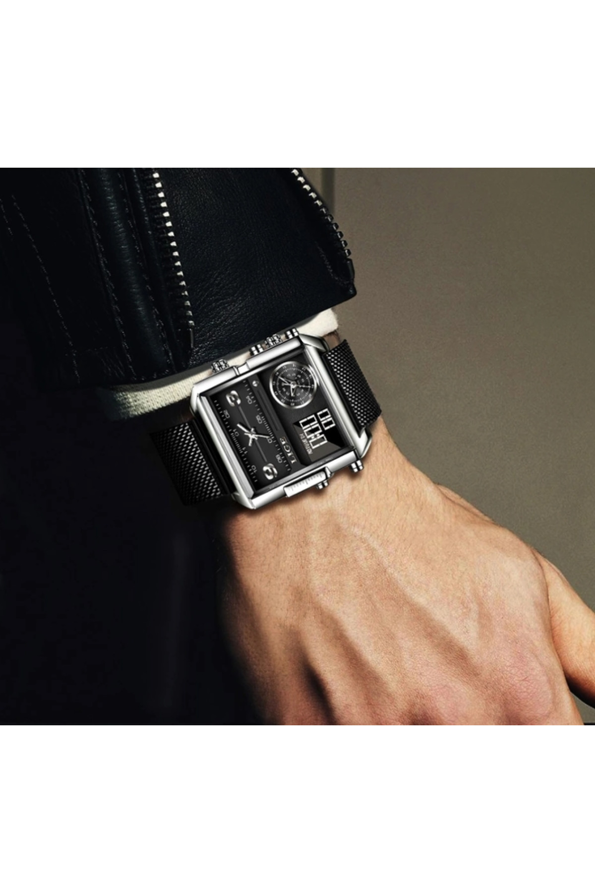 Два механізми часу, секундомір, будильник, підсвічування, дата, день тижня, місяць