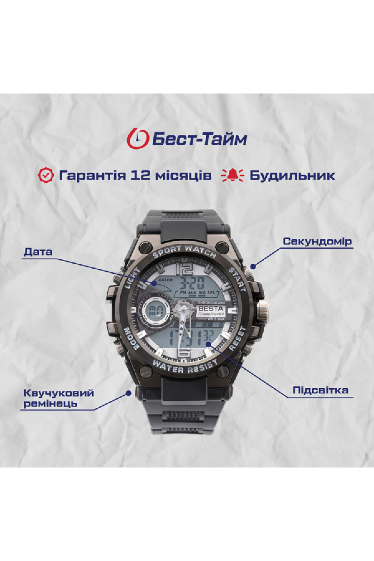 Lige (Besta) Sport - преміальна, тактична спортивна модель випущена на заводі Besta в партнерстві з брендом Lige. Годинники мають підвищену ударостійкість, не бояться води й підійдуть під будь-який стиль.На передній стороні годинника виконане витончене гравіювання Слава Україні! На задній стороні - тризуб і Героям Слава!В комплекті йде офіційна гарантія на 12 місяців.