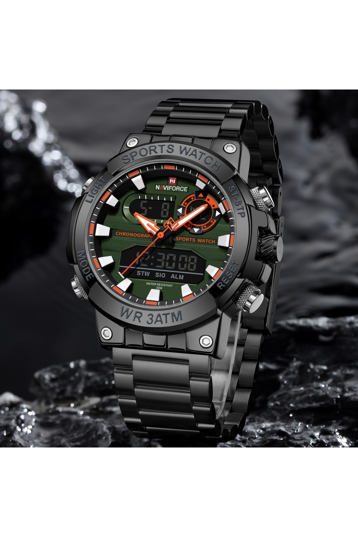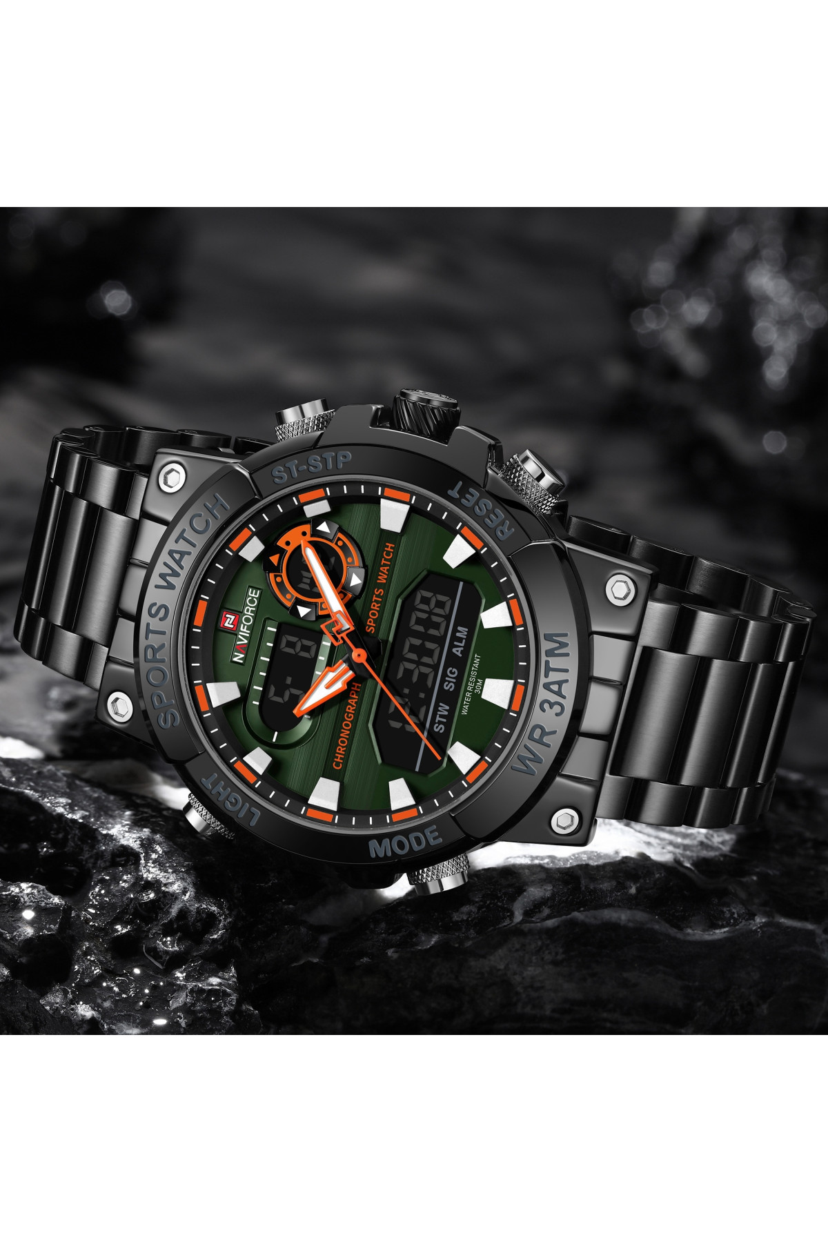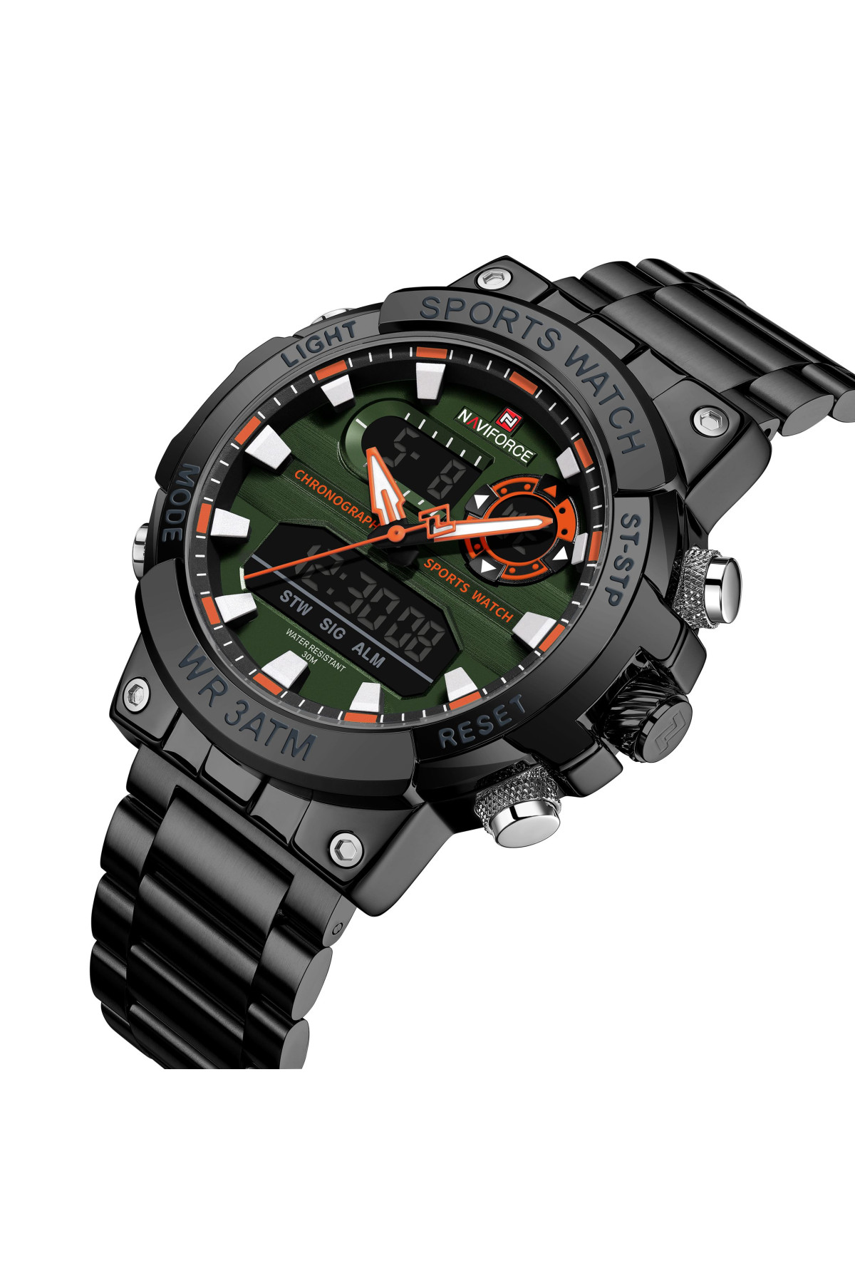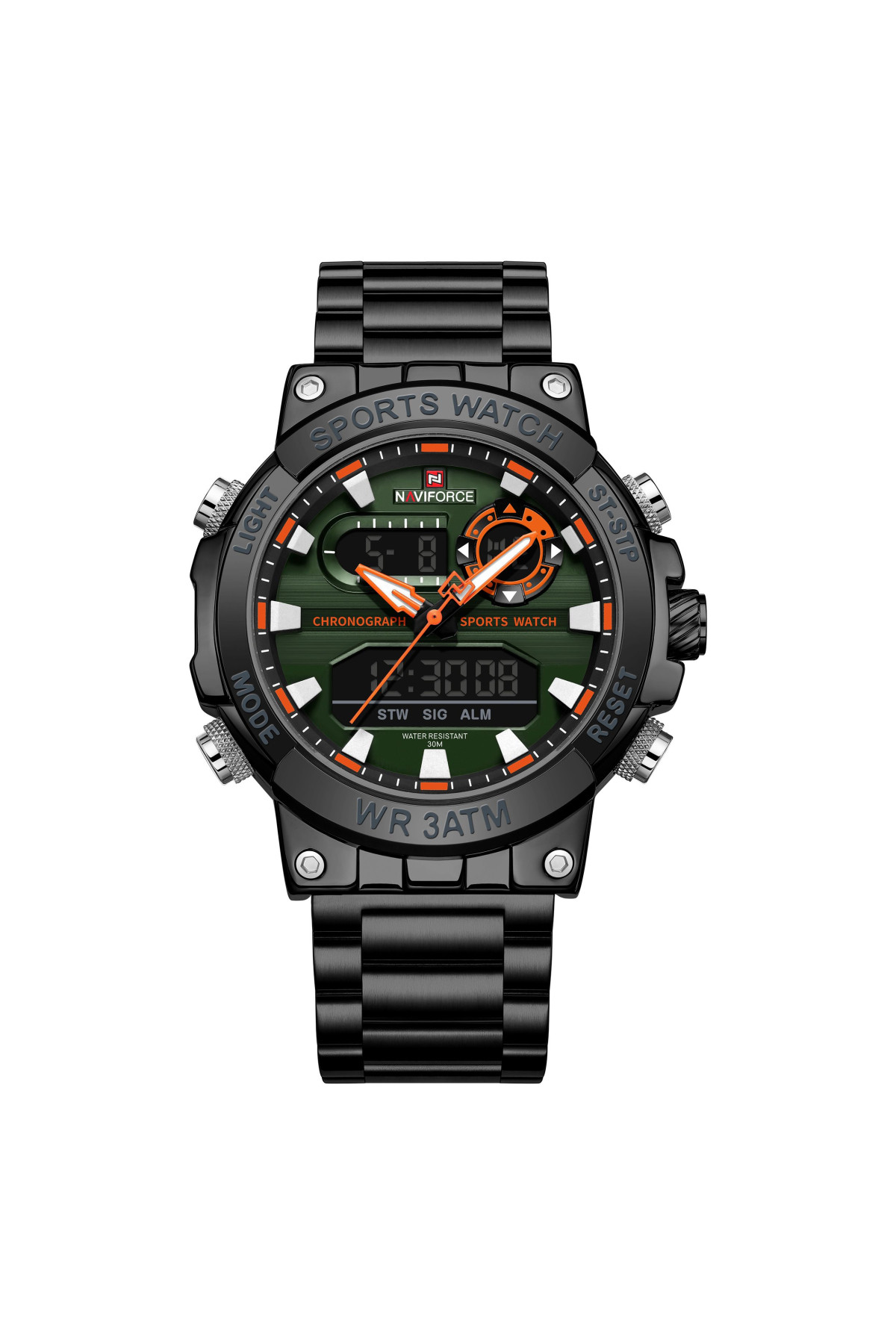 Таймер, будильник, підсвічування, секундомір, час показується на циферблаті й стрілками, дата, день тижня, місяць, другий час (Dual Time)