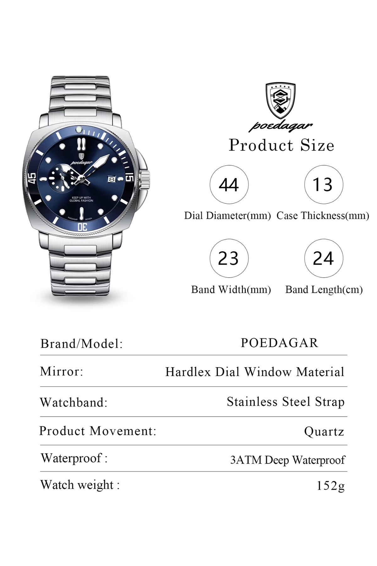 По діаметру годинника