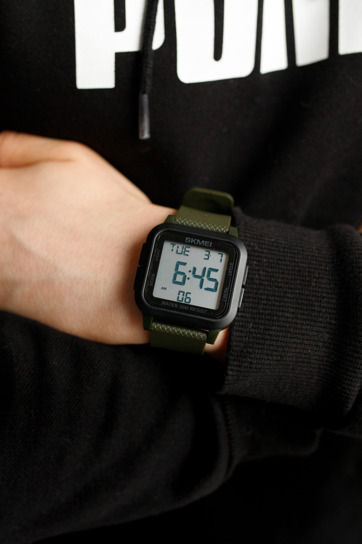 Секундомір, будильник, підсвічування, дата, день тижня, місяць
