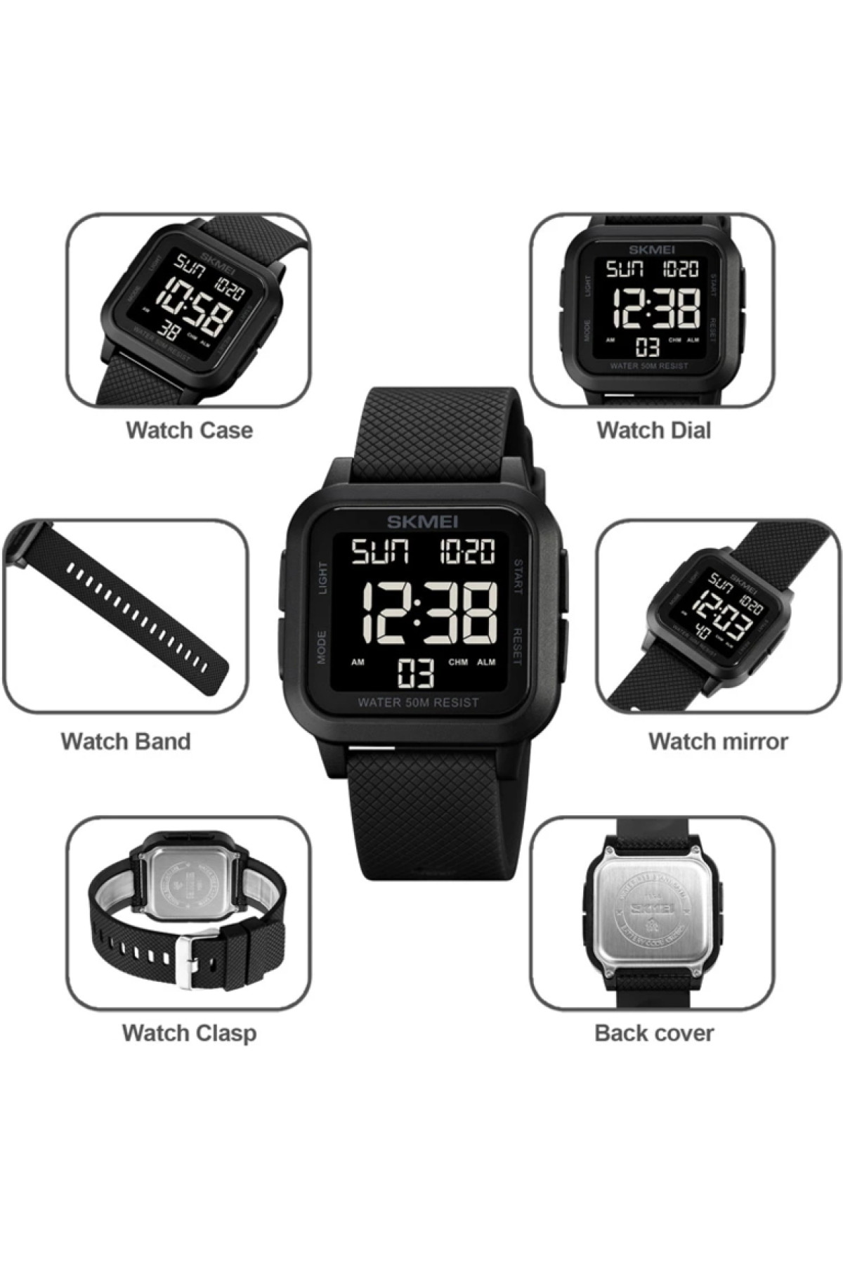 Секундомір, будильник, підсвічування, дата, день тижня, місяць