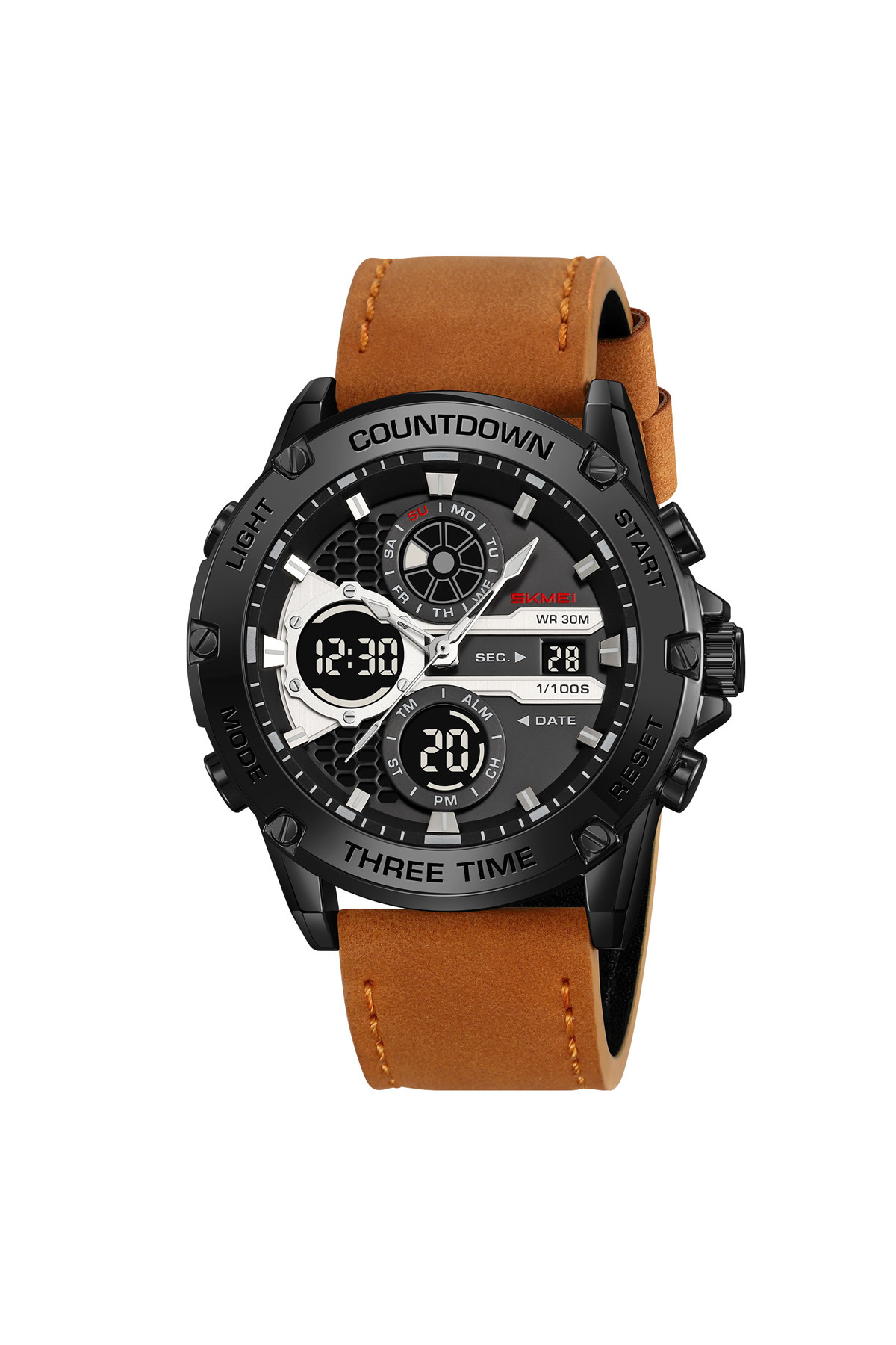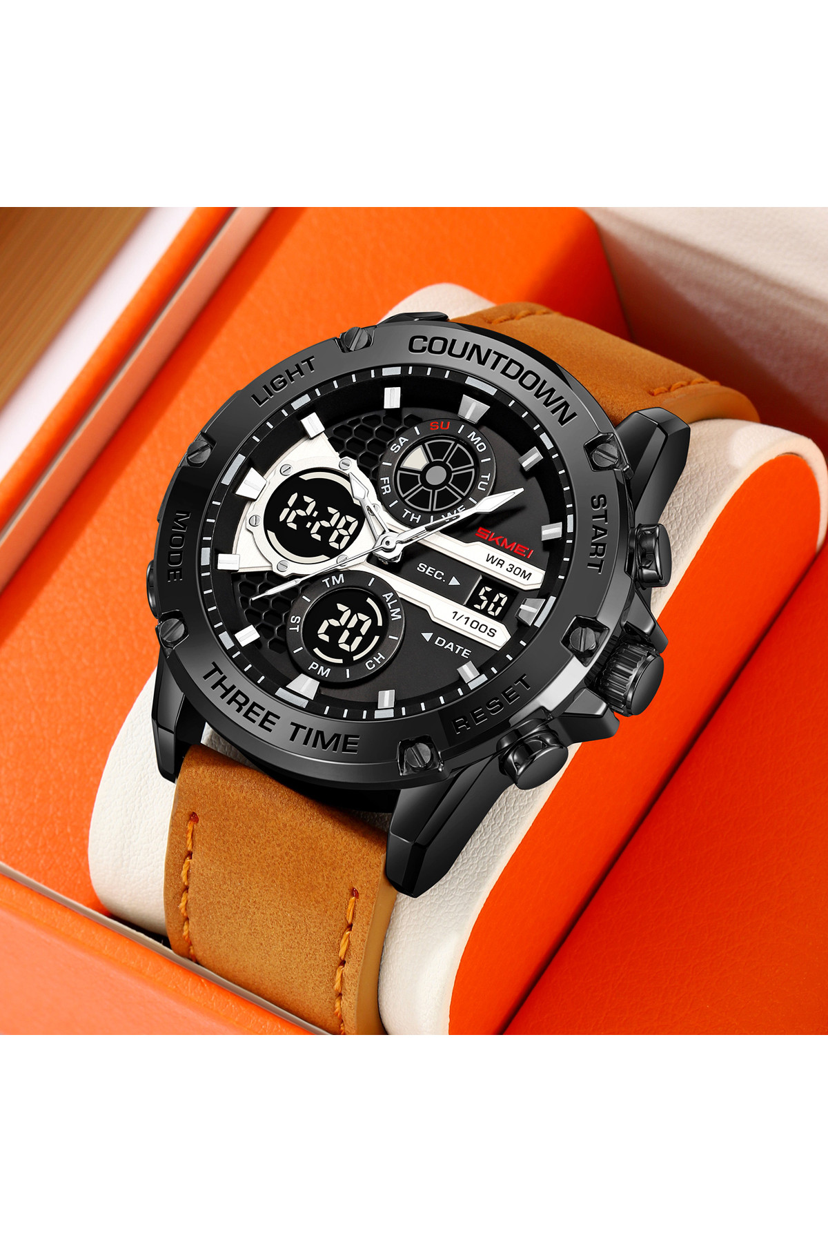 Секундомір, таймер, будильник, підсвічування, час показується на циферблаті й стрілками, дата, день тижня, місяць