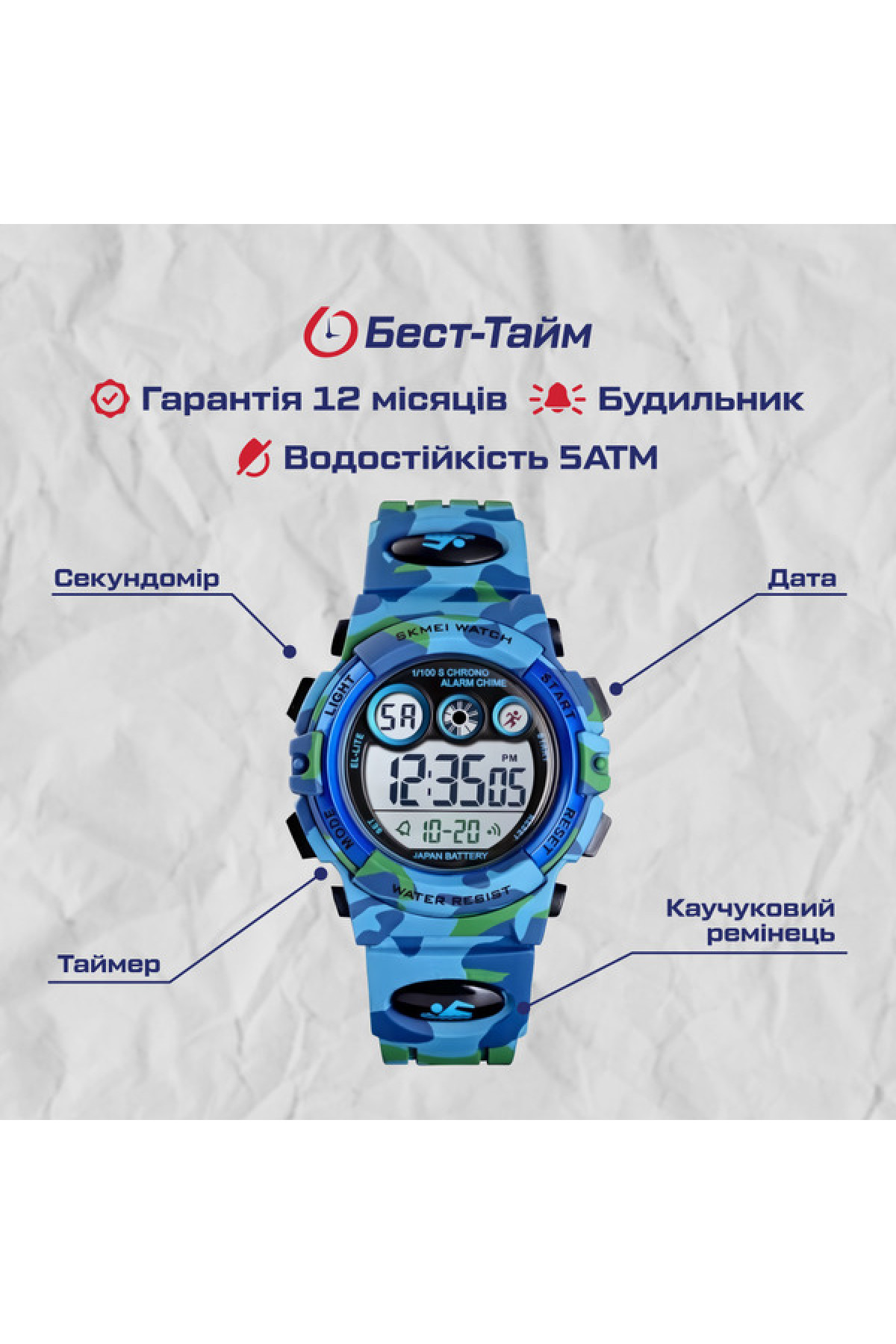 Секундомір, будильник, дата, день тижня, місяць