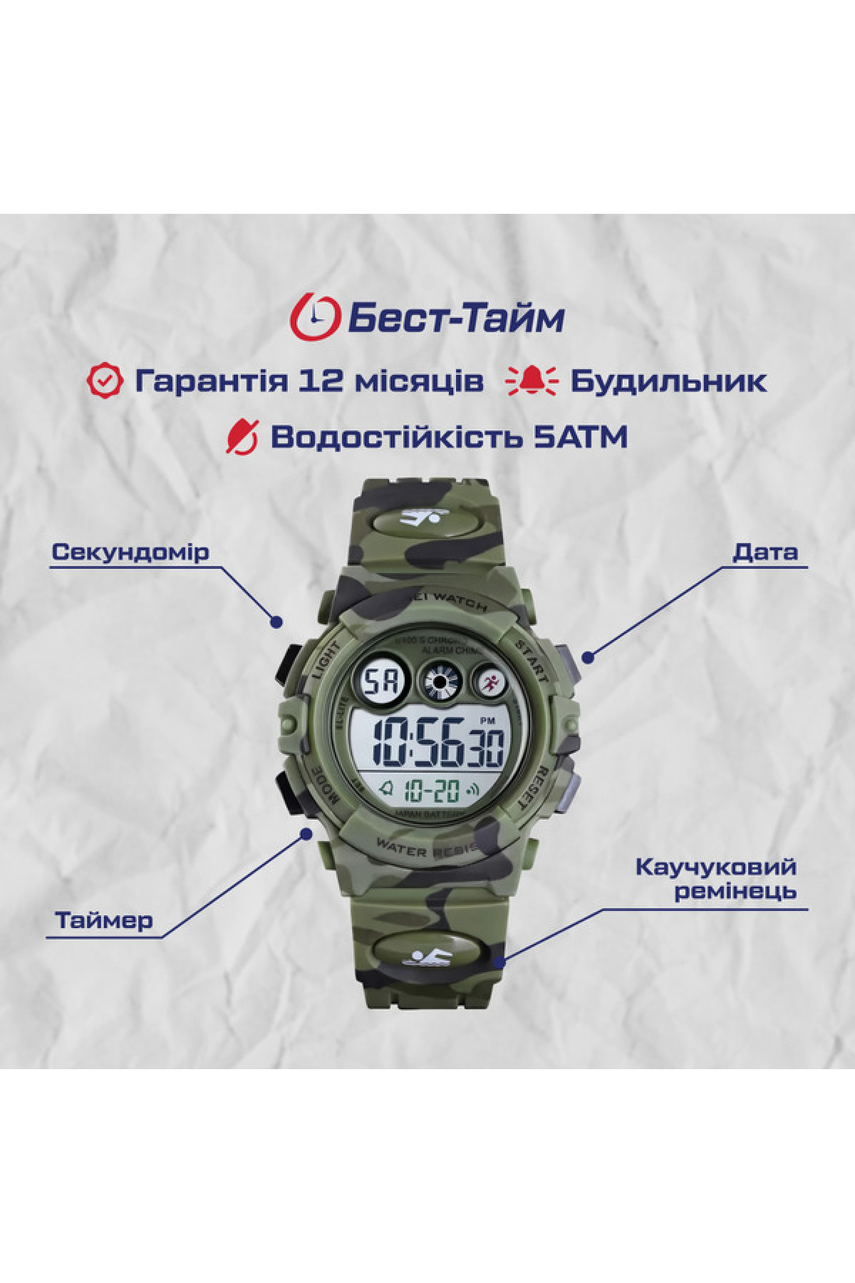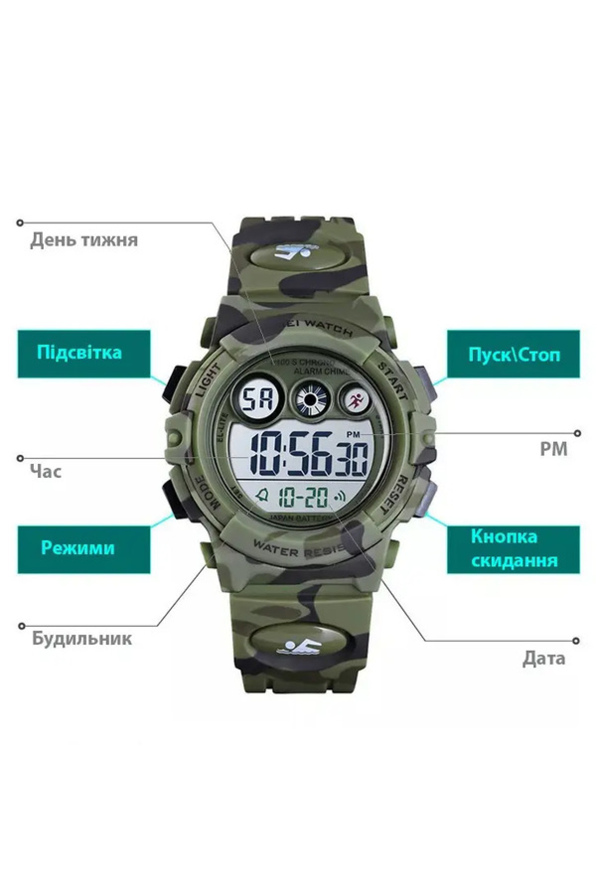 Секундомір, таймер, будильник, дата, день тижня, місяць