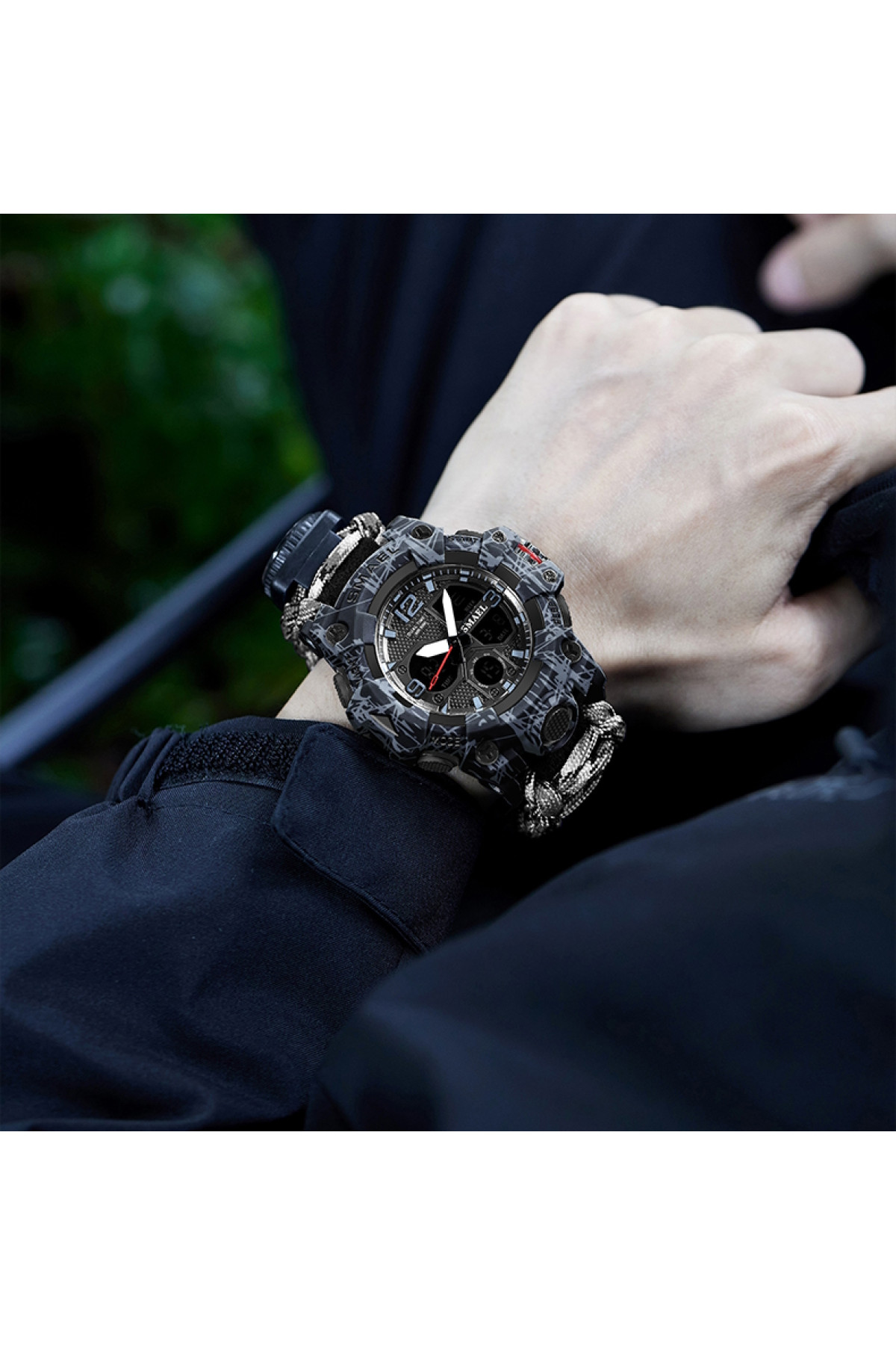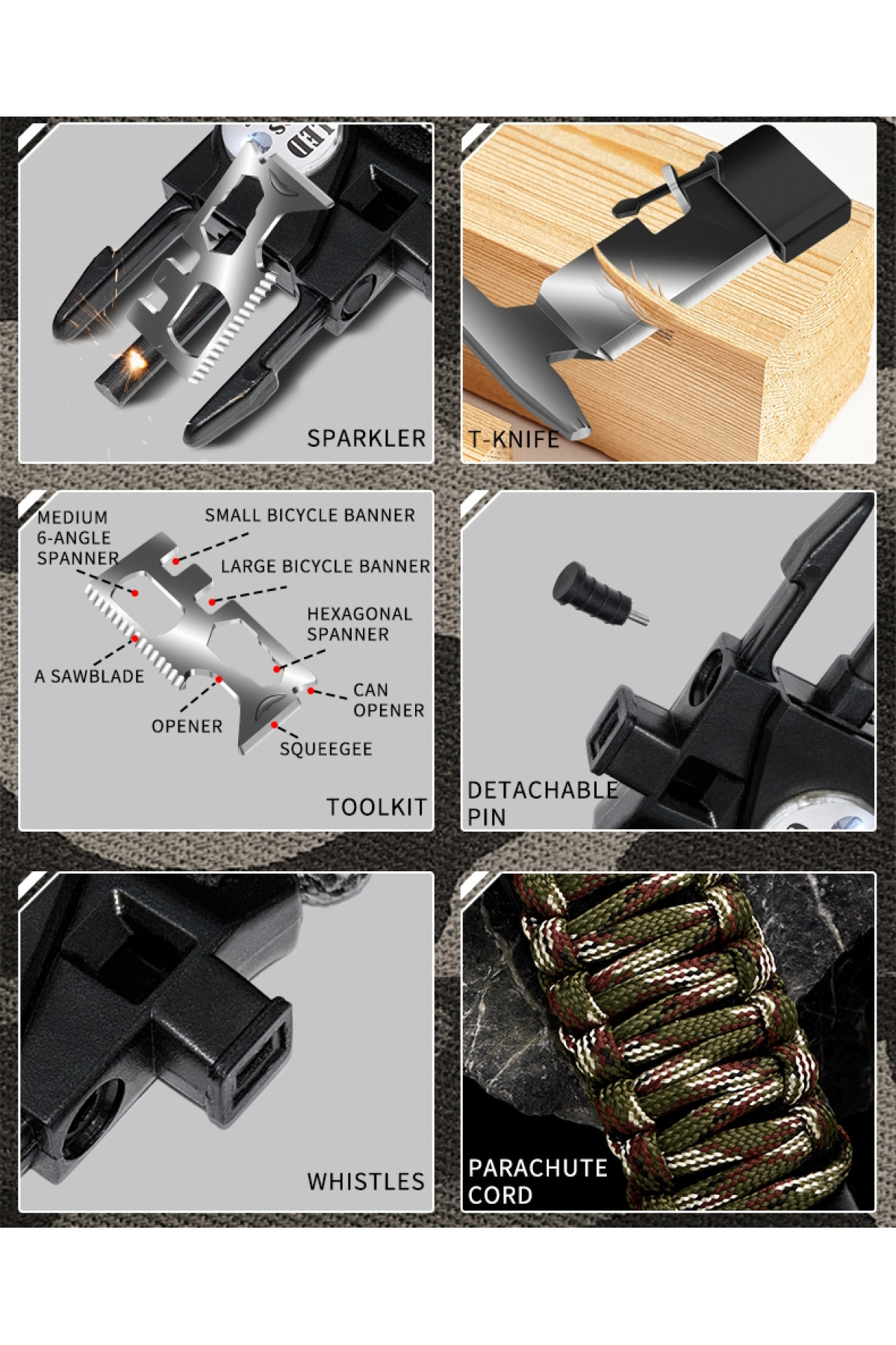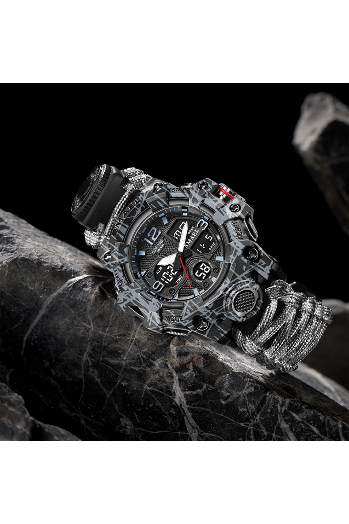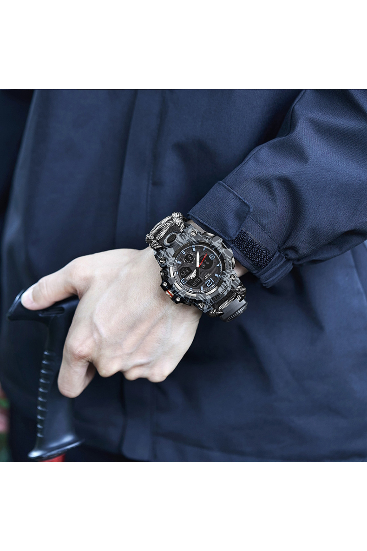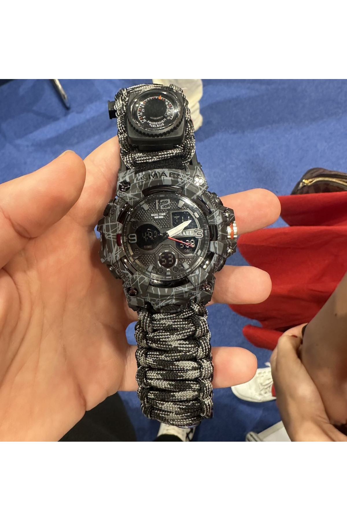 Компас, будильник, секундомір, подвійний час, кремінь, тактична застібка, підсвічування, свисток, термометр, 2 батарейки