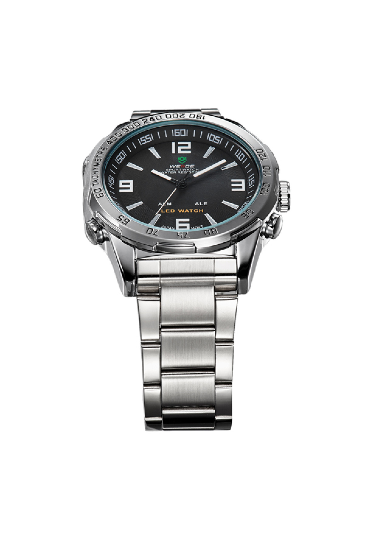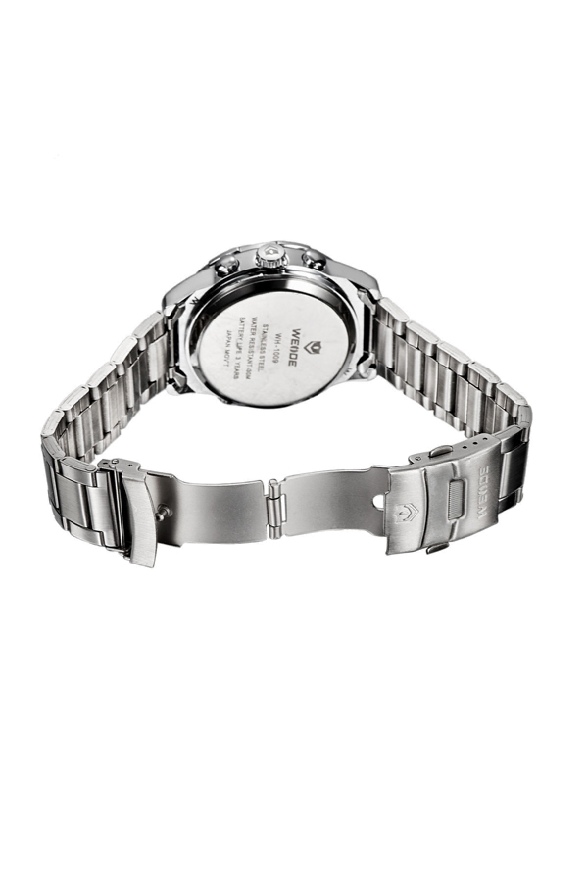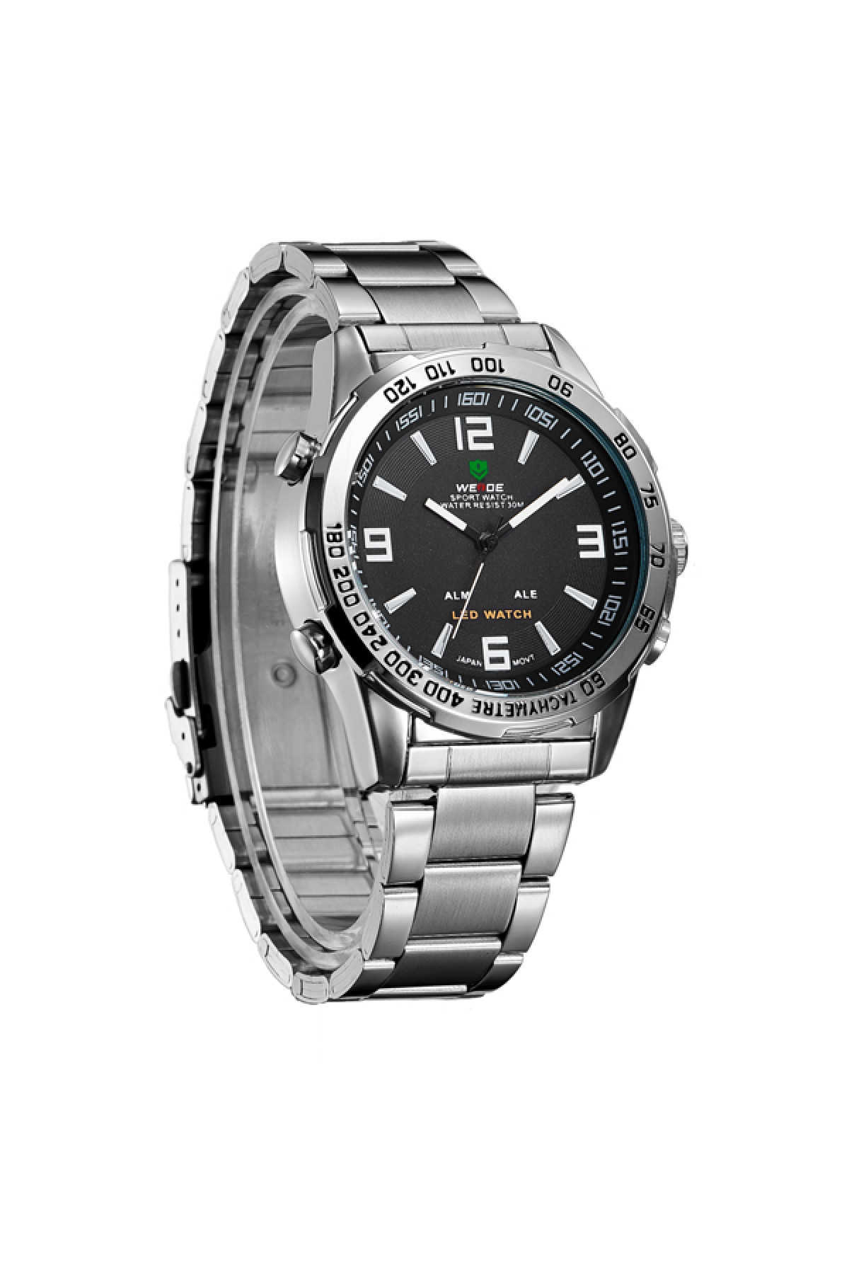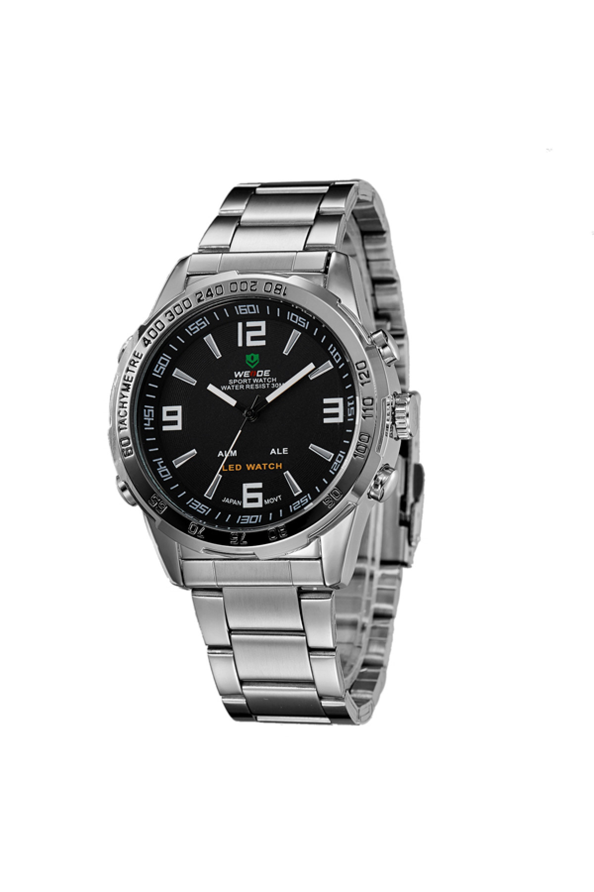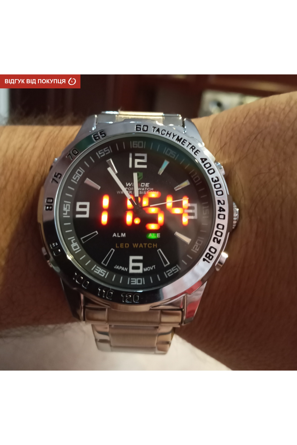 Будильник, підсвічування, час показується на циферблаті й стрілками, дата, день тижня, місяць