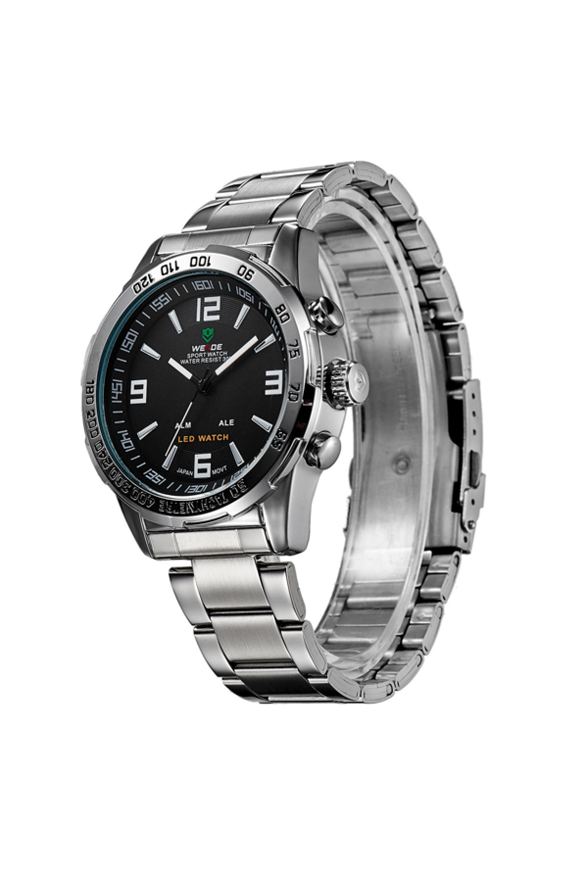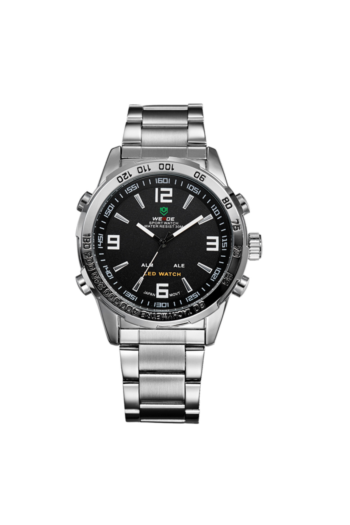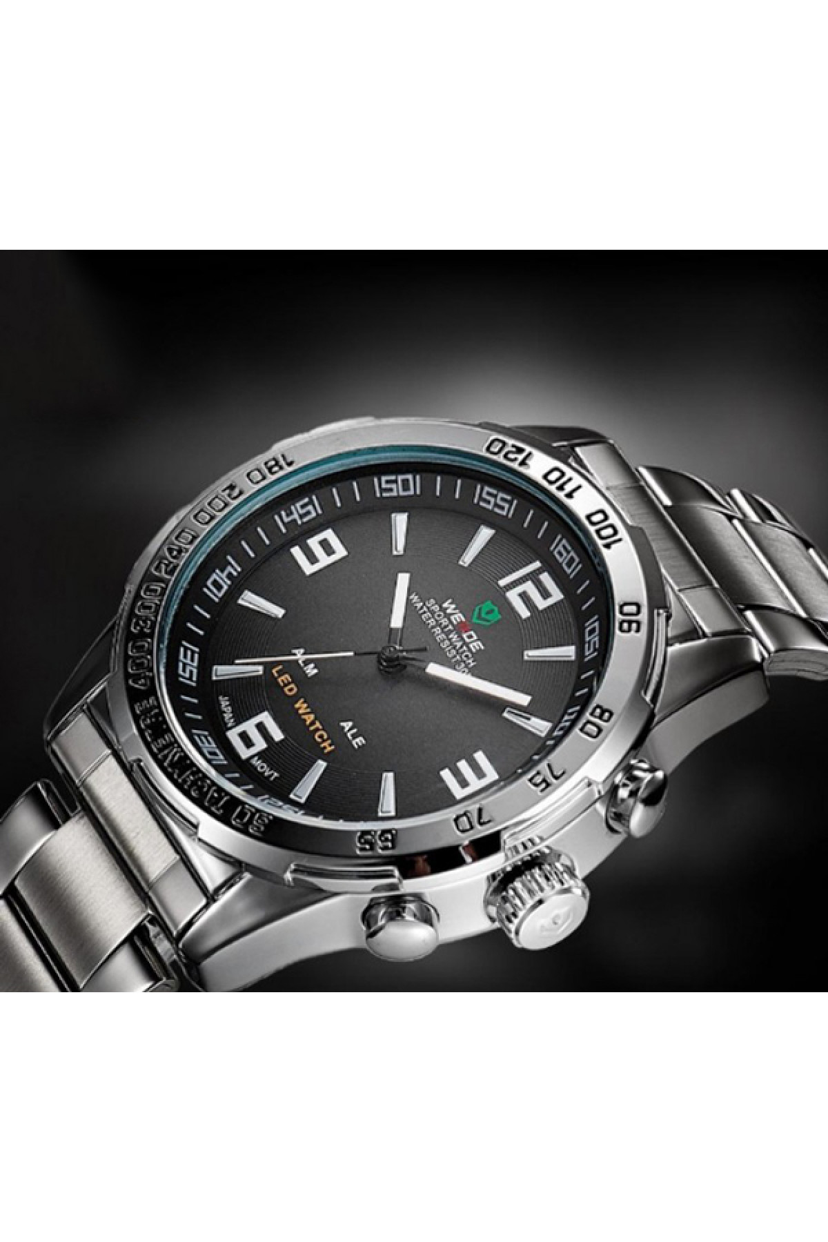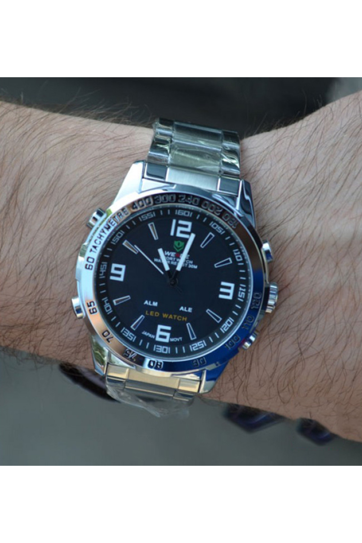 Будильник, підсвічування, час показується на циферблаті й стрілками, дата, день тижня, місяць