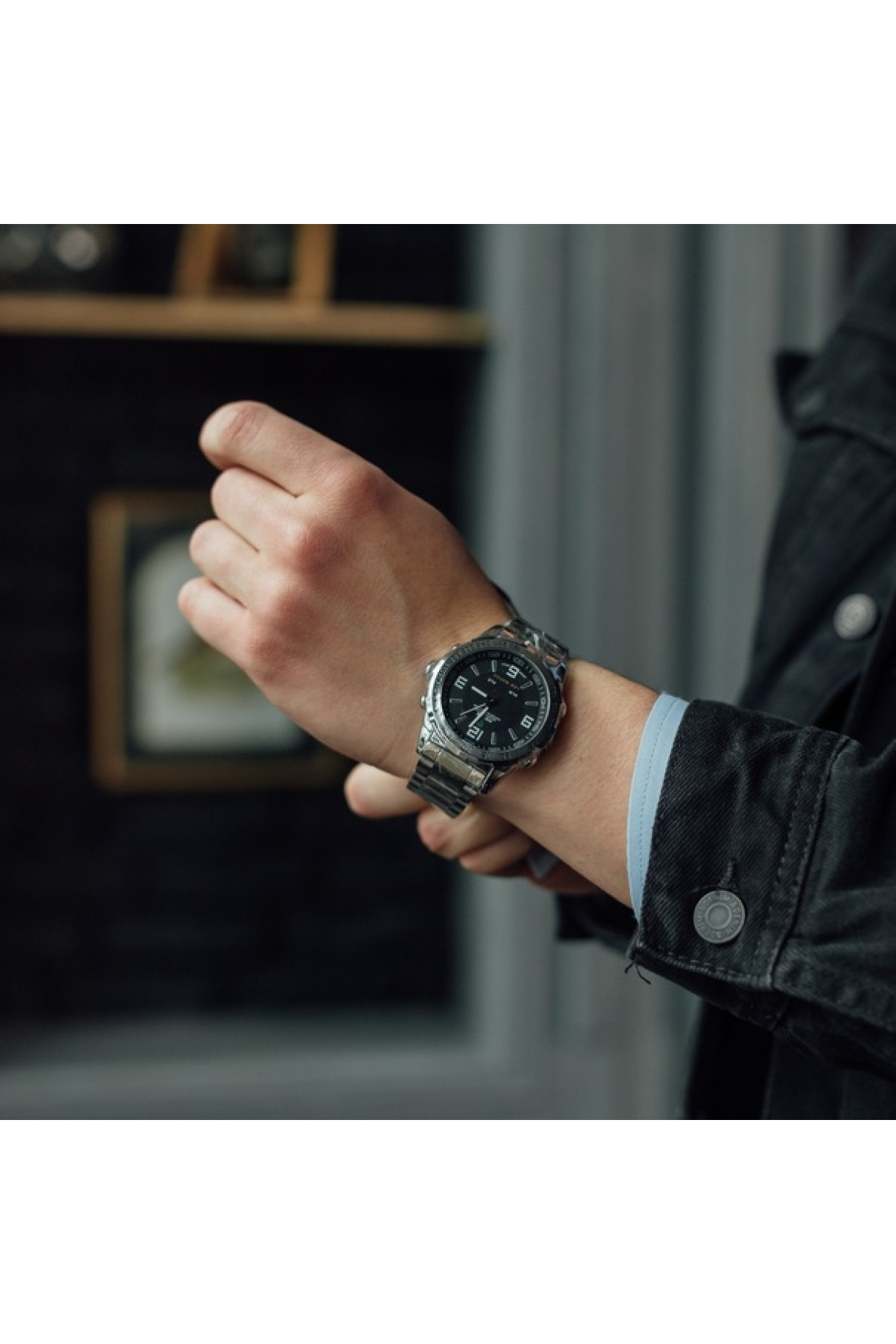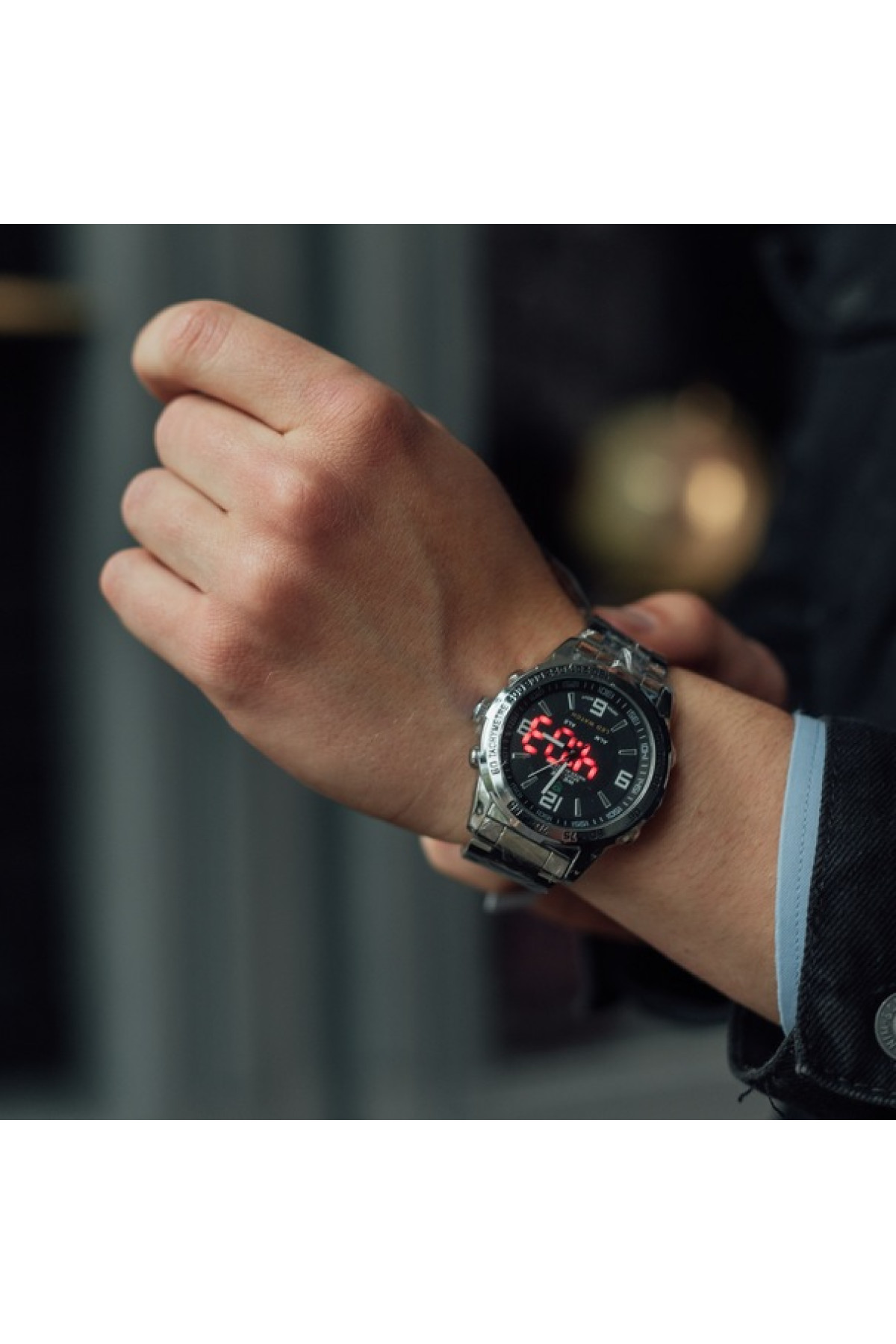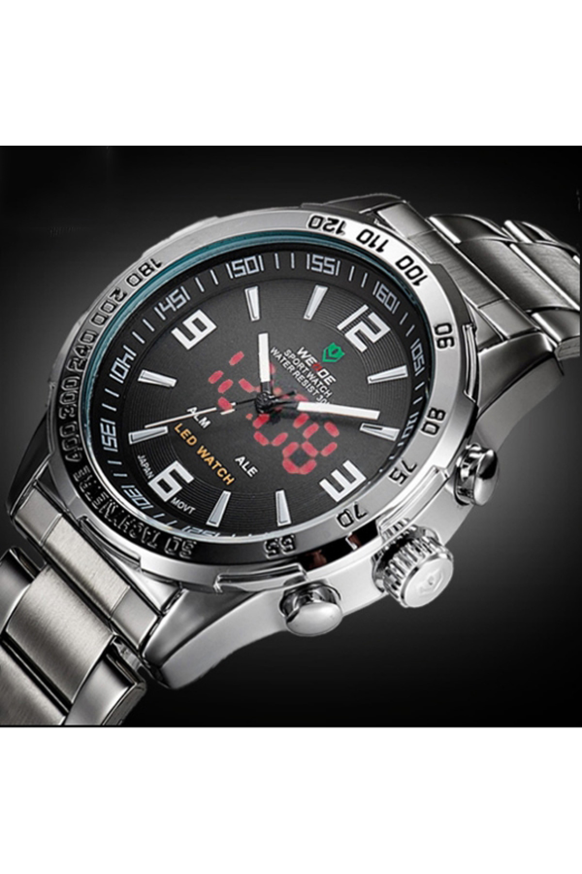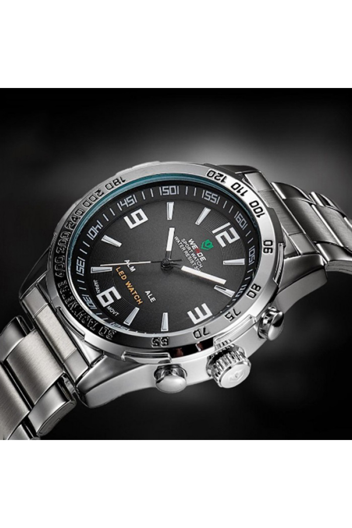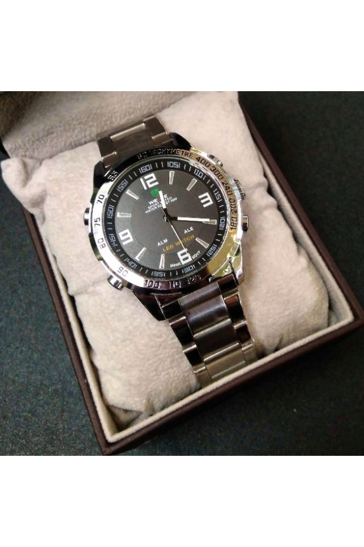 Будильник, підсвічування, час показується на циферблаті й стрілками, дата, день тижня, місяць