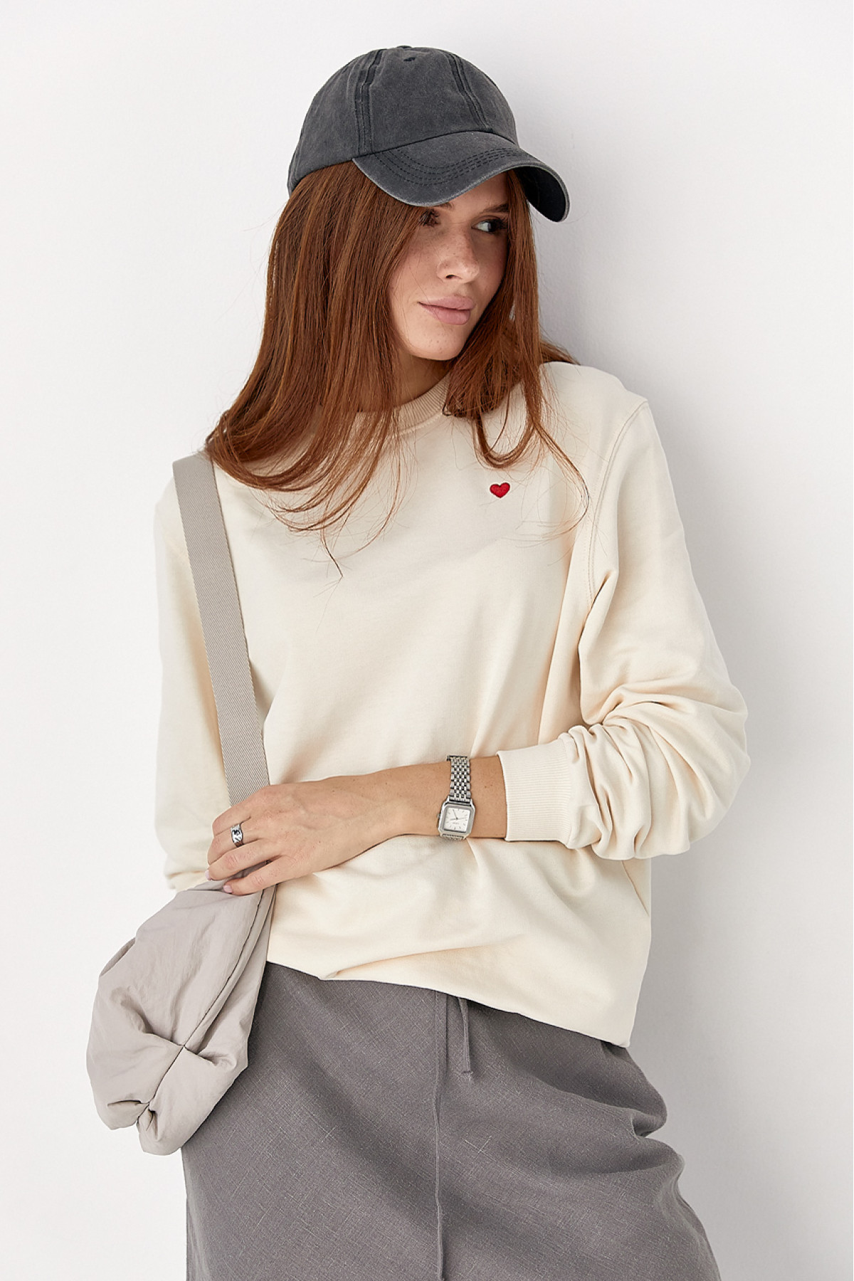 Однотонний світшот із сердечком кремовий колір