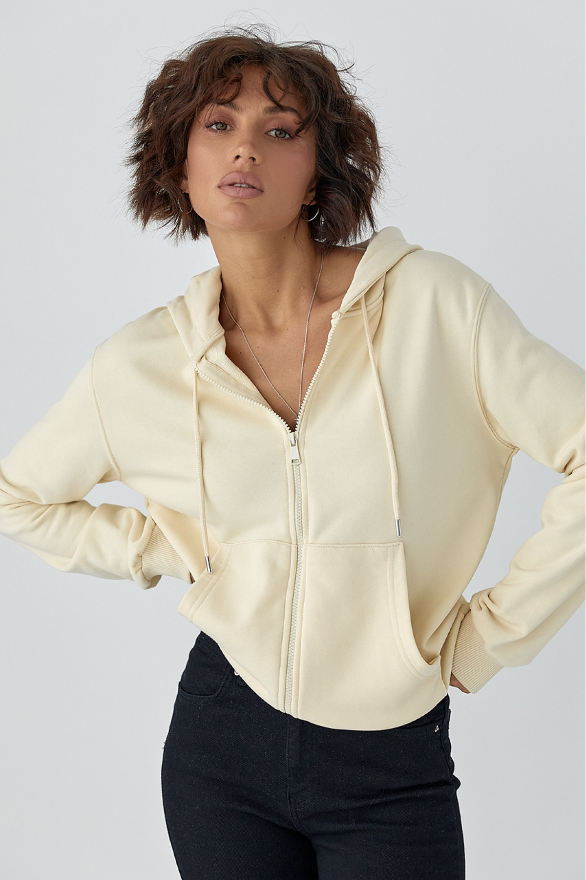 Опис Жіноче худі на блискавці кремовий колір