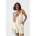 Опис Літній костюм із топом на зав'язках і шортами кремовий колір