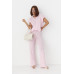 Літній в'язаний костюм із футболкою та штанами рожевий колір