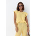 Літній в'язаний костюм із футболкою та штанами жовтий колір