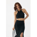 Питання та відповіді (FAQ) Літній в'язаний костюм зі спідницею та кроптопом чорний колір