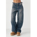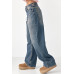 Широкі прямі жіночі джинси з затяжками на поясі синій колір