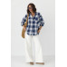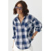 Опис Жіноча картата сорочка на ґудзиках темносиній колір