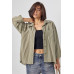 Опис Жіноча сорочка у смужку з рукавами три чверті хакі колір