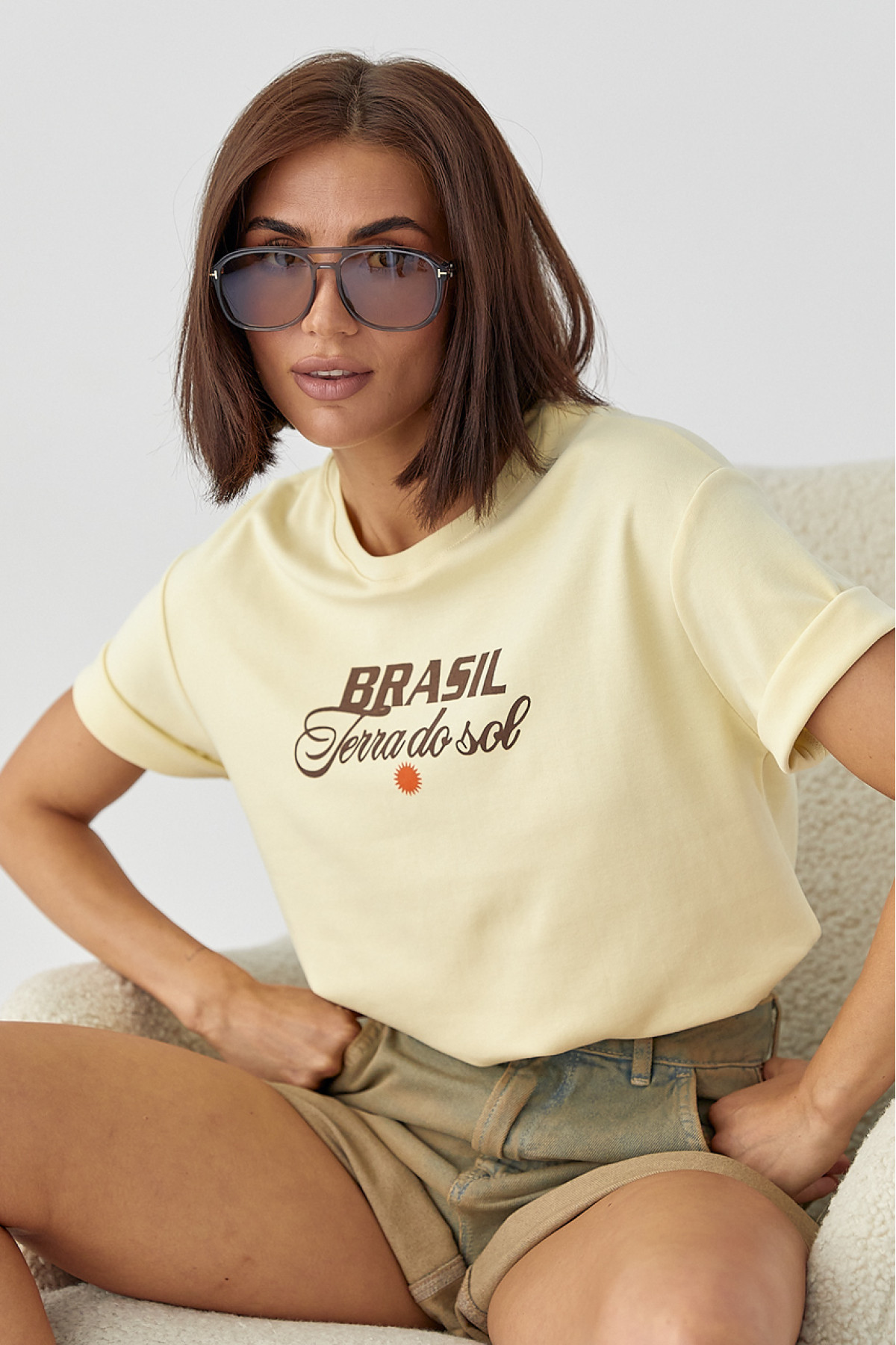 Основні характеристики Бавовняна футболка з написами лимонний колір