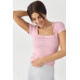 Опис Футболка в рубчик з квадратним вирізом рожевий колір