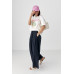 Трикотажний костюм з блузою і прямими штанами молочний колір