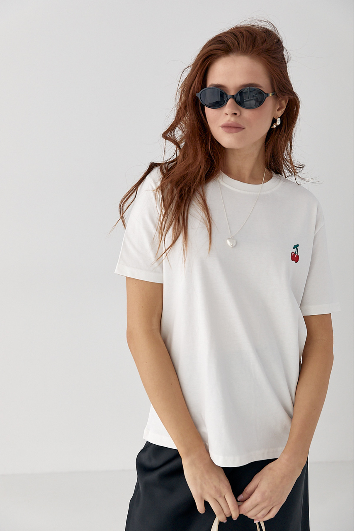 Основні характеристики Футболка з вишитими вишеньками молочний колір