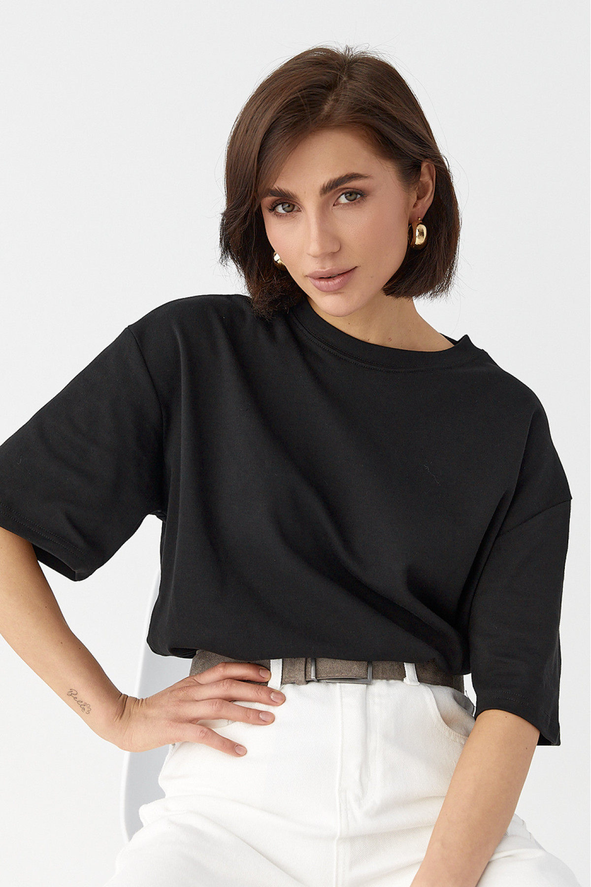 Питання та відповіді (FAQ) Однотонна базова футболка чорний колір