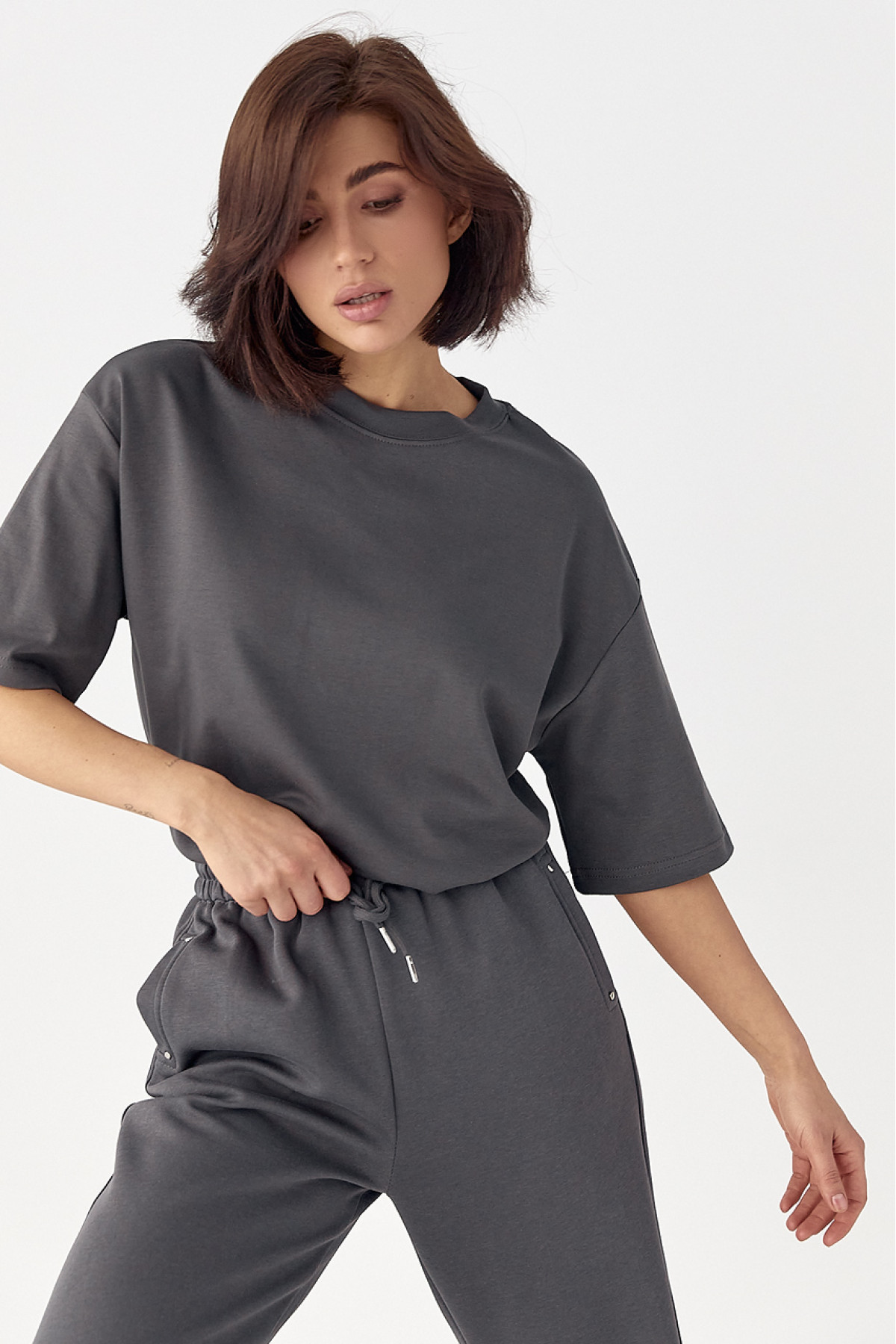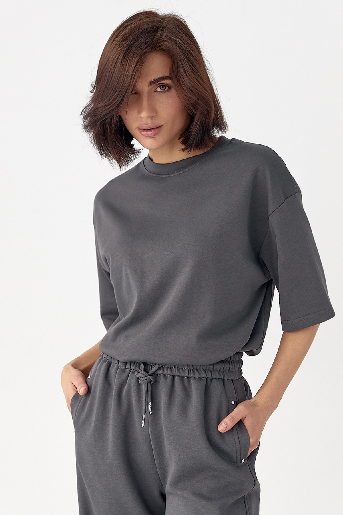 Опис Однотонна базова футболка сірий колір