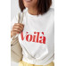 Питання та відповіді (FAQ) Однотонна футболка з написом Voila молочний колір