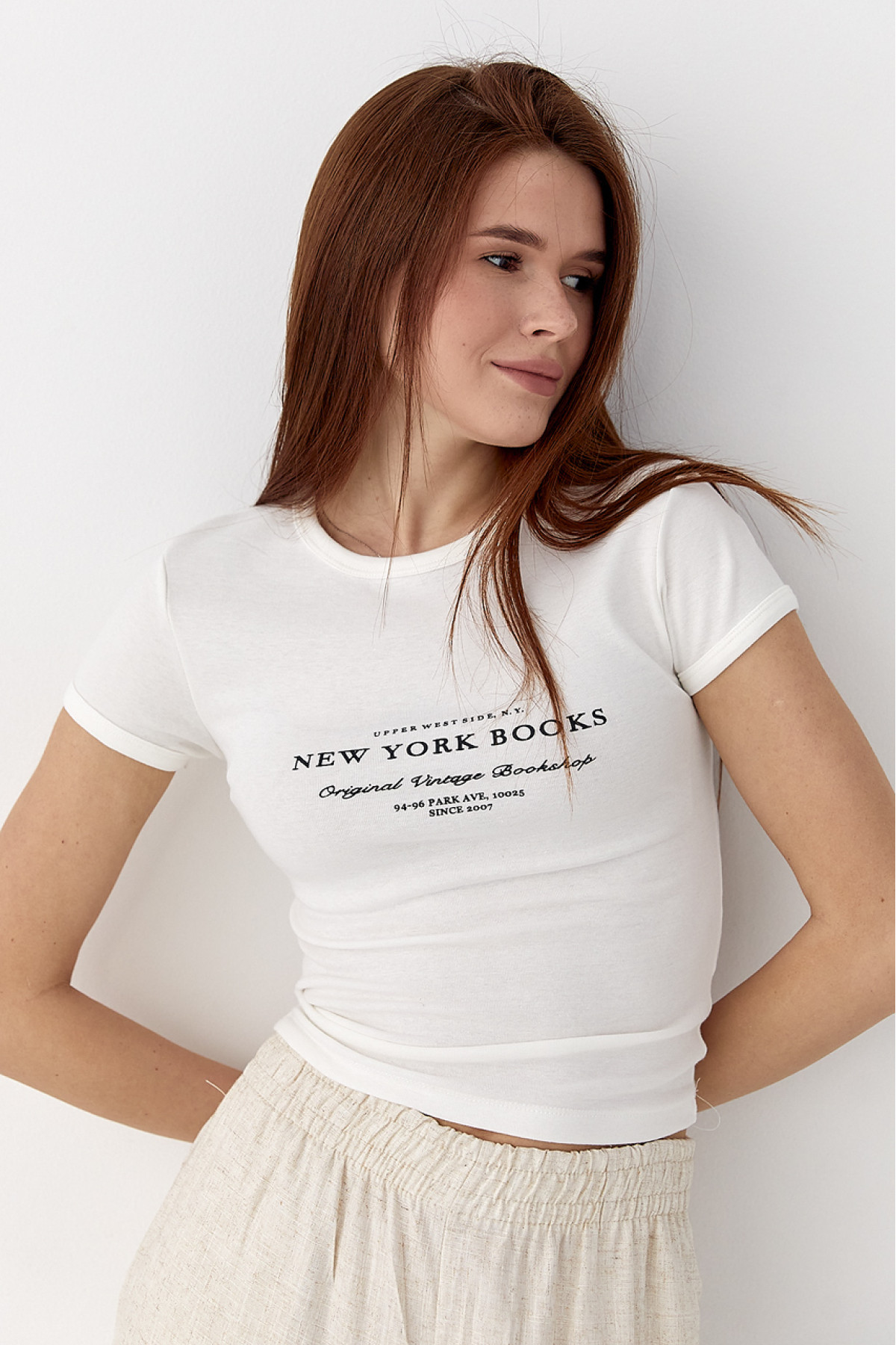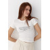 Питання та відповіді (FAQ) Приталена футболка з принтом молочний колір