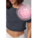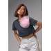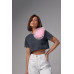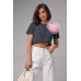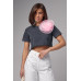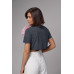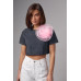 Вкорочена футболка прикрашена об'ємною квіткою темносірий колір