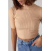 Опис Жіноча вкорочена водолазка з коротким рукавом бежевий колір