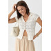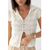 Опис Жіноче поло на ґудзиках з ажурної в'язки молочний колір